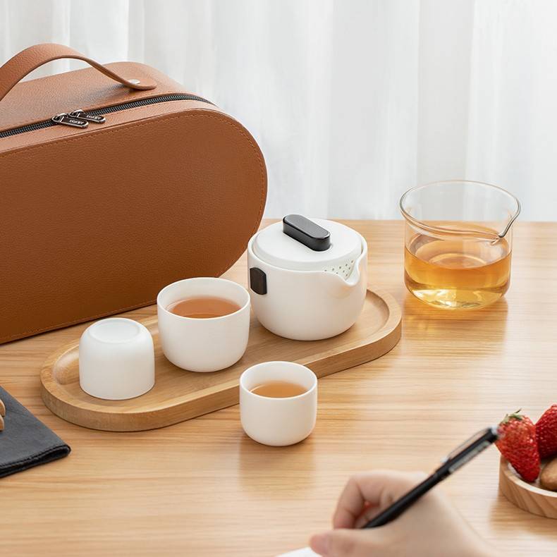 礼盒装 新款 高档功夫茶具套装 景德镇官方陶瓷浮雕山水三才盖碗中式