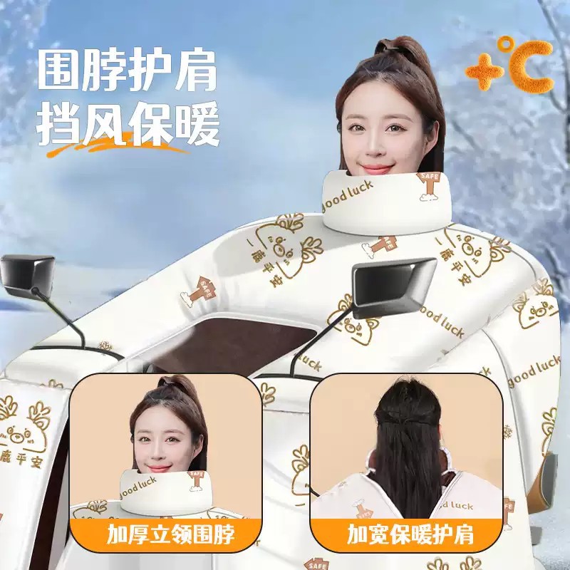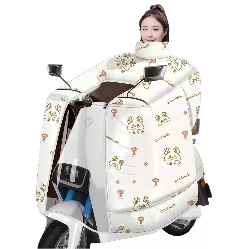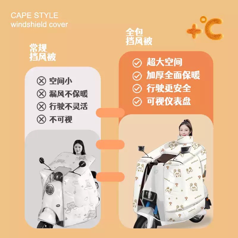 通用 电瓶摩托防风防水罩四季 电动车挡风被冬季 加绒加厚全包斗篷式