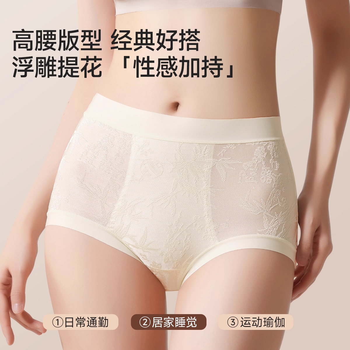 女士女生三角裤 大码 高腰无痕抗菌加长裆新款 菇娘家零染棉纯棉内裤