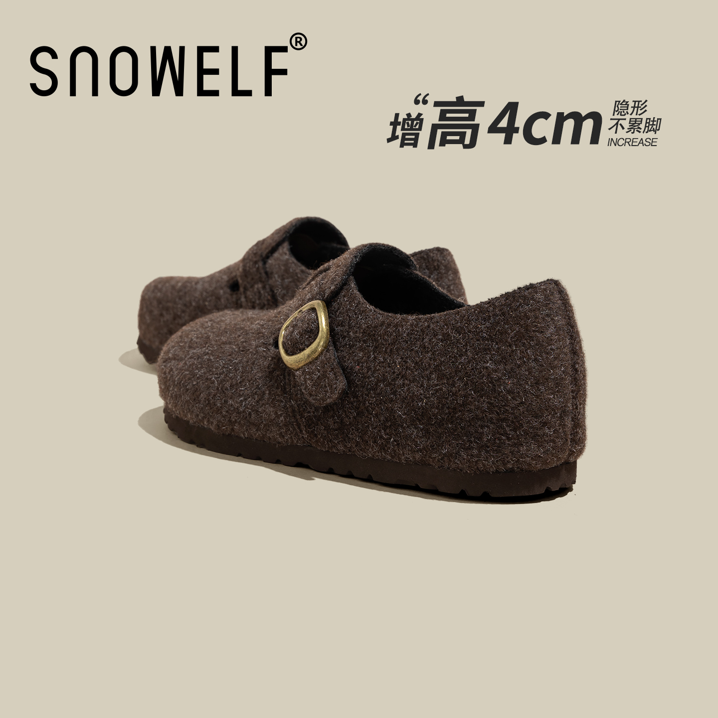 女款 内增高鞋 2025新款 灰色百搭单鞋 子 秋冬爆款 厚底全包毛呢勃肯鞋