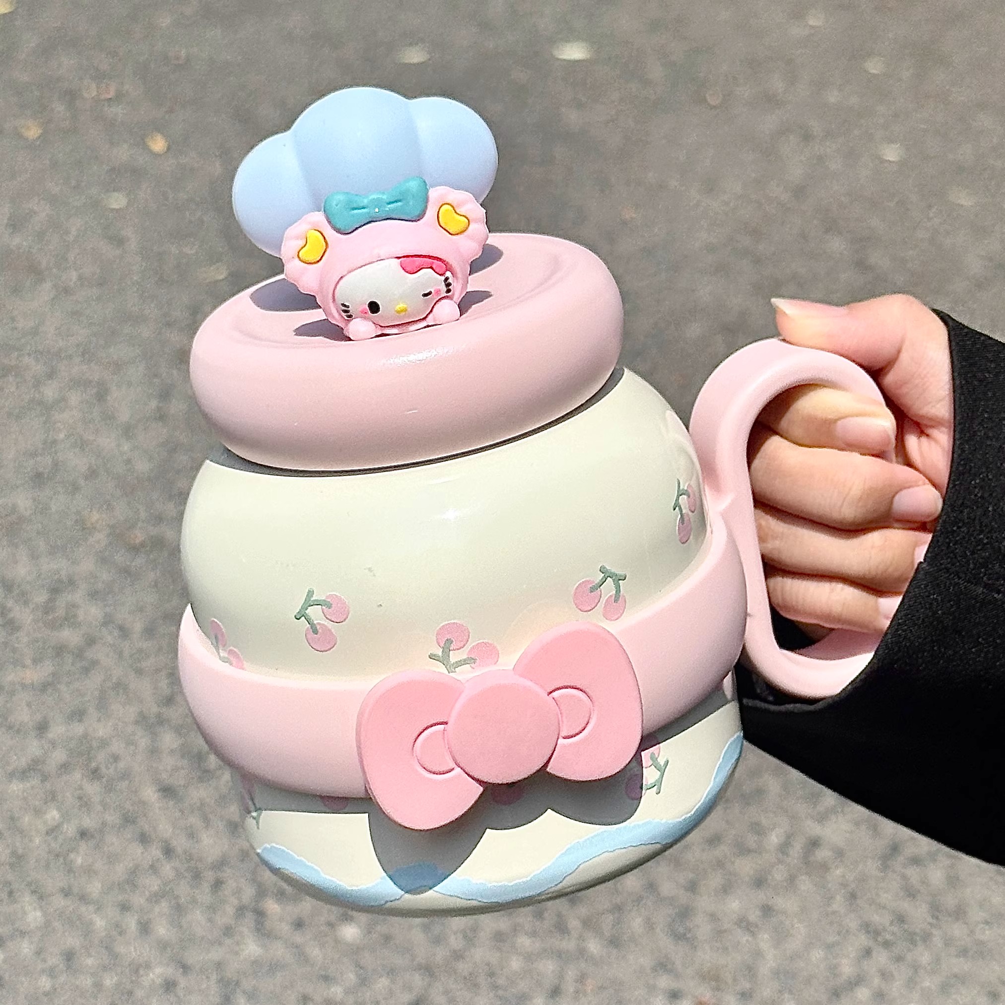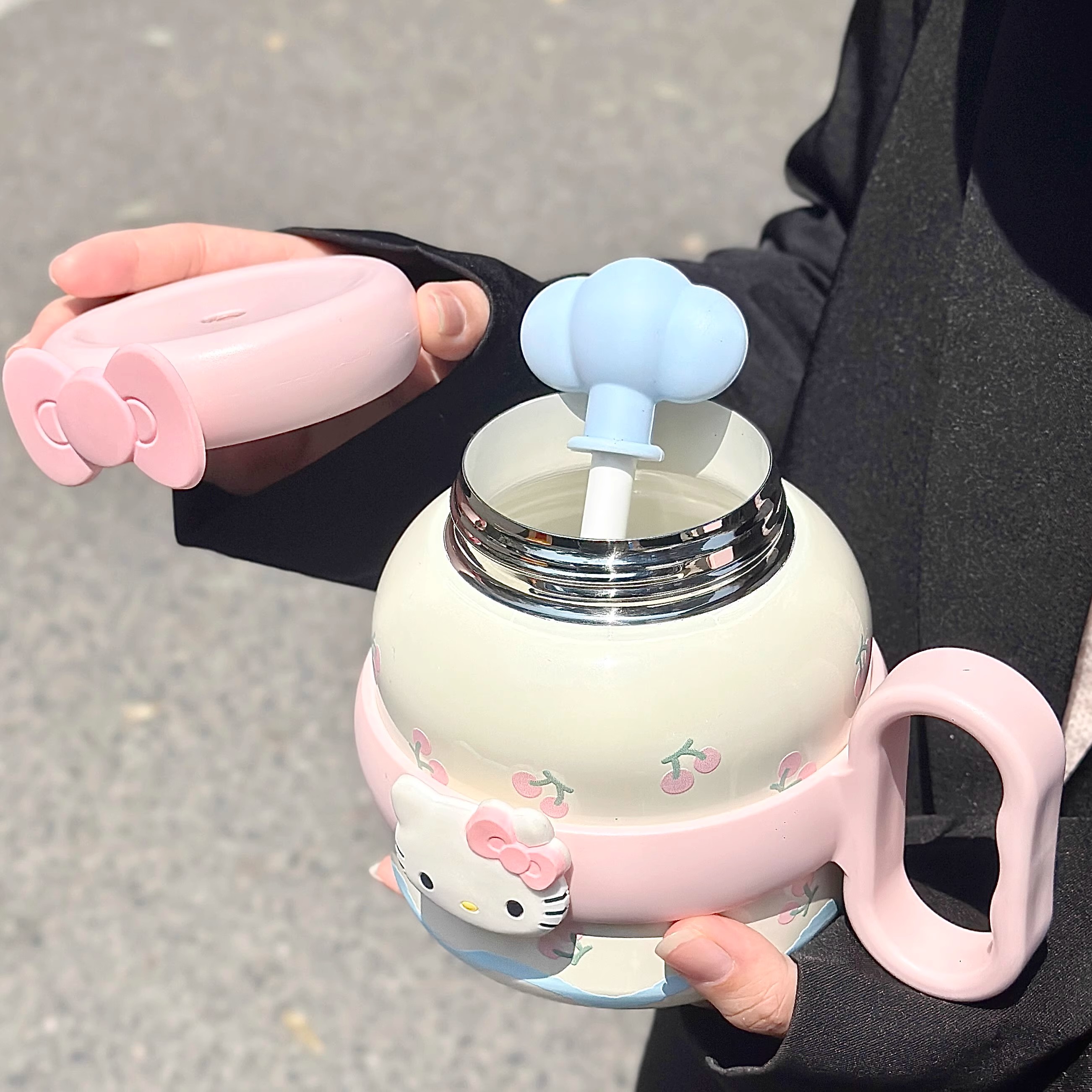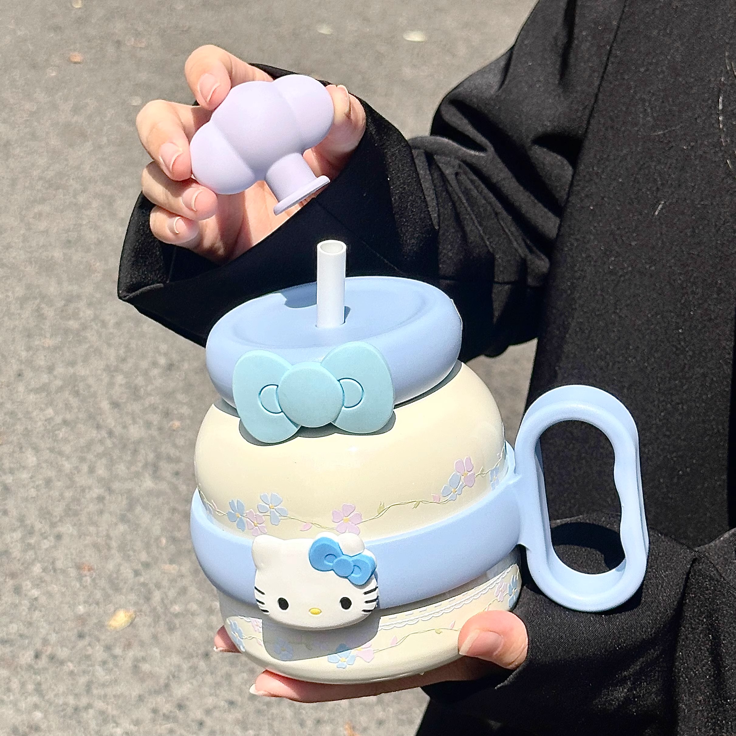 hellokitty保温杯女生可爱内胆陶瓷水杯办公室大肚杯学生吸管杯子