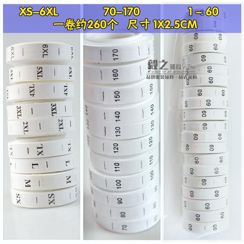 工号标号码 服装 6XL儿童装 标数字母水洗标工序标XS 唛 辅料英文尺码