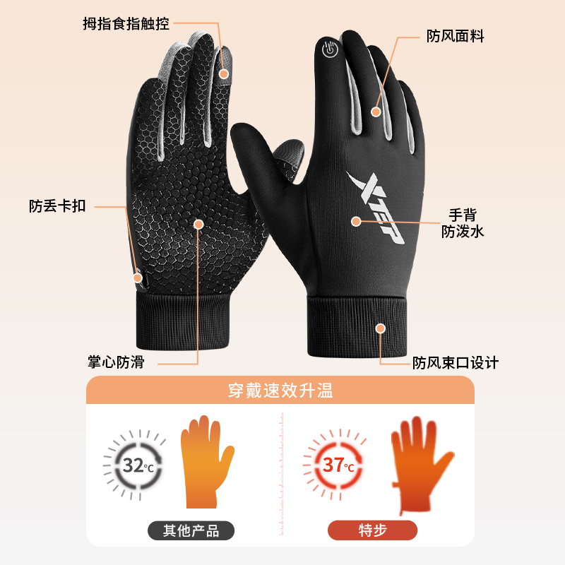 冬季 电动车手套加厚加绒保暖麂皮绒骑行防寒触屏男女士防风手套
