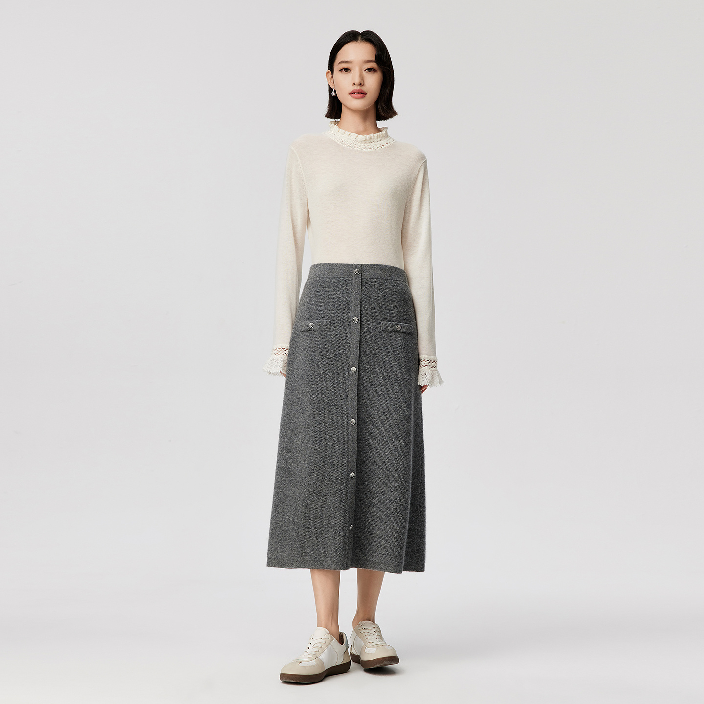 黑色羊毛呢半身裙女春秋2025新款 长裙直筒气质秋冬针织a字包臀裙