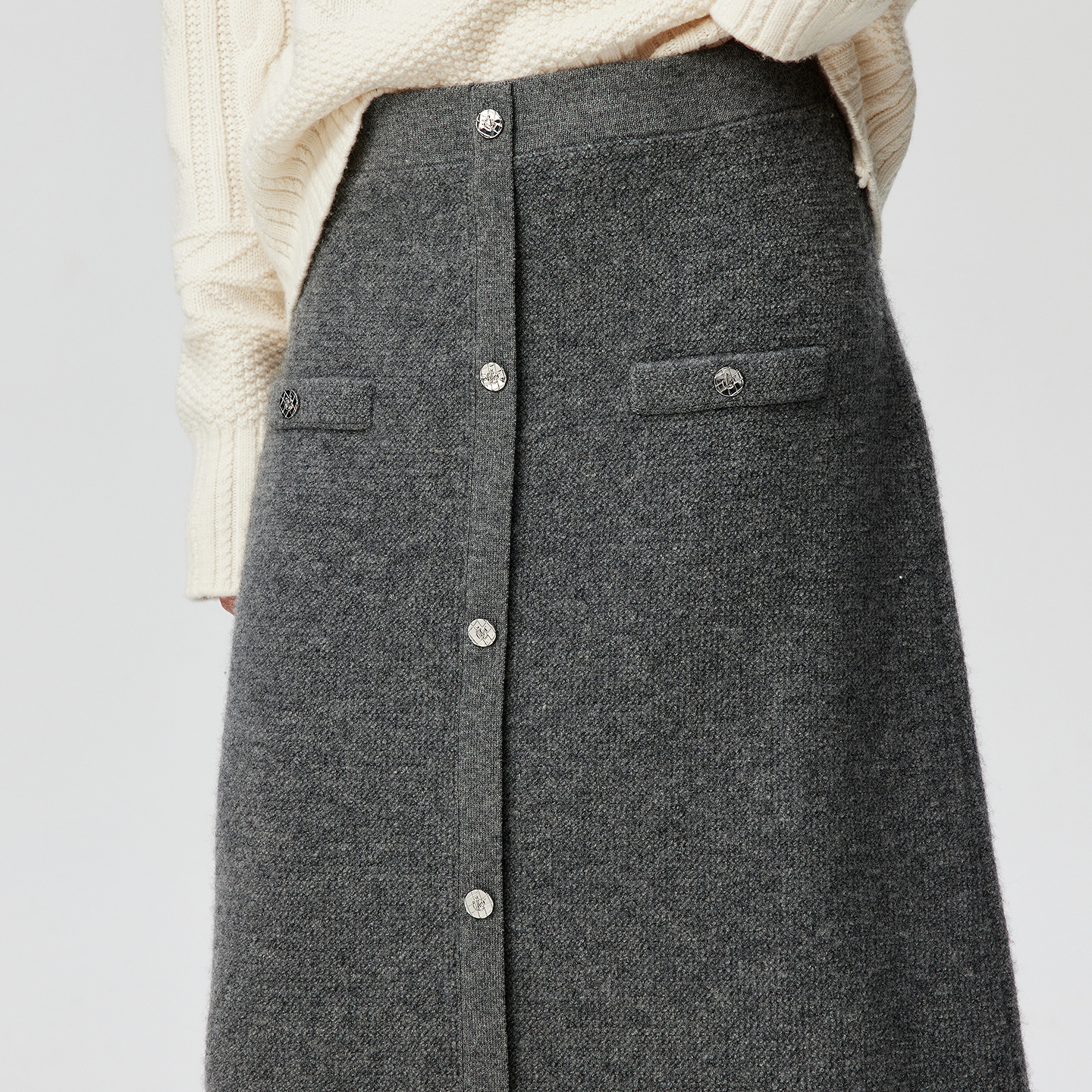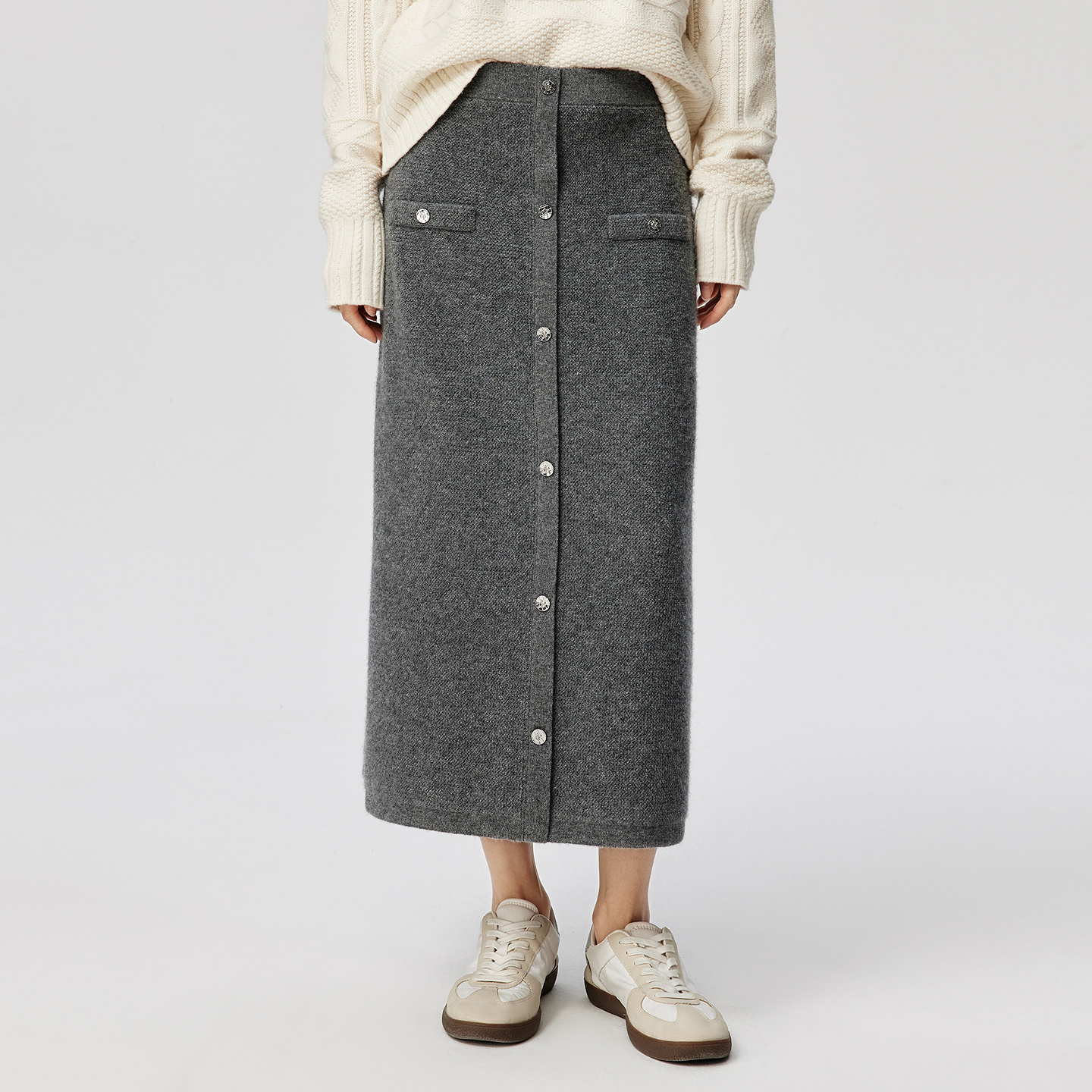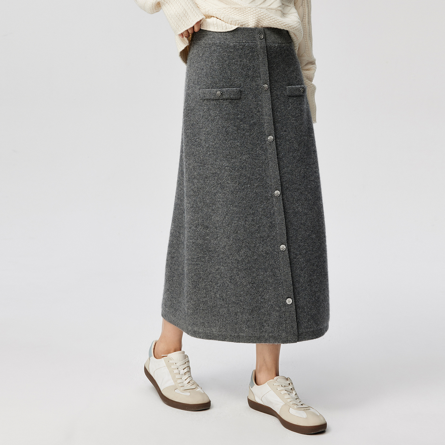 大码 灰色毛呢半身裙女长裙宽松直筒针织a字开叉包臀裙胖mm春秋冬