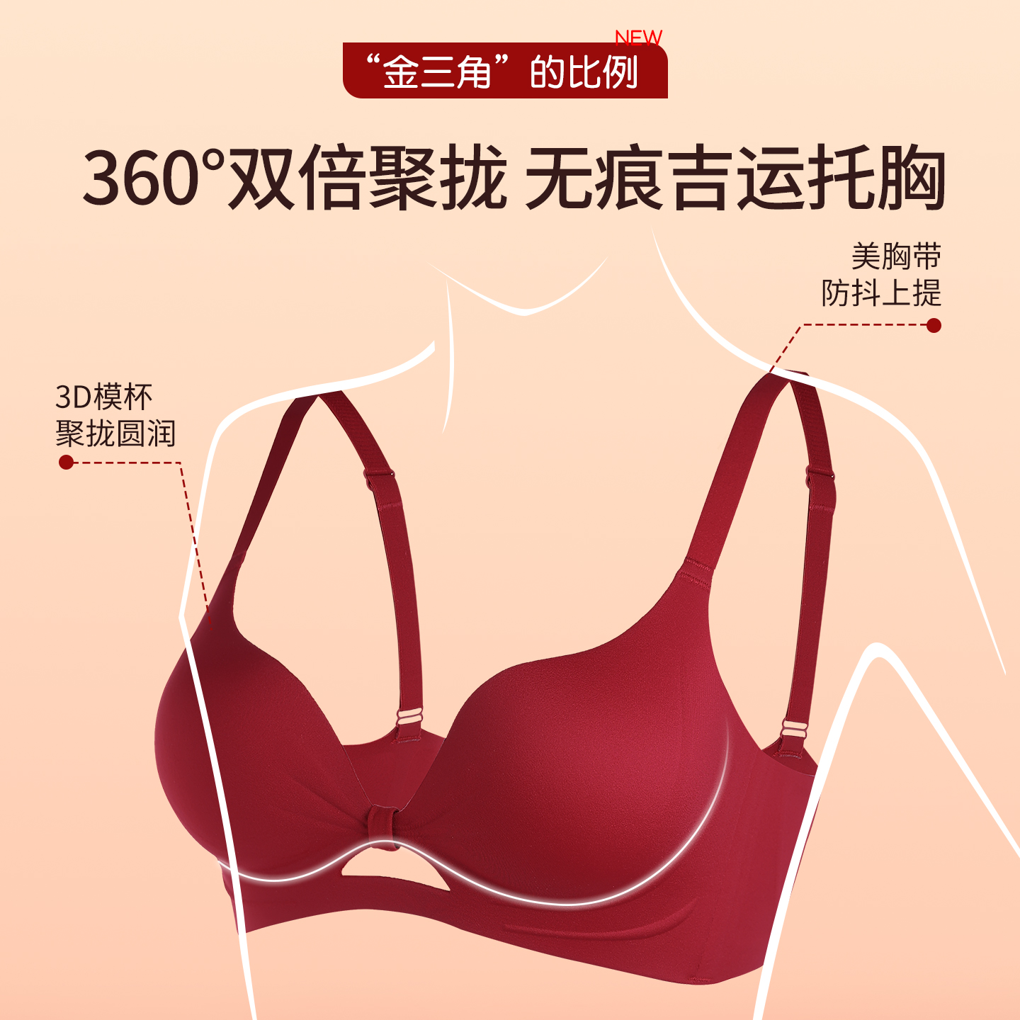 草本初色内衣女反重力聚拢小胸收副乳防下垂无痕无钢圈软支撑文胸