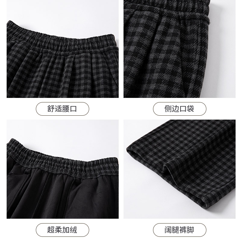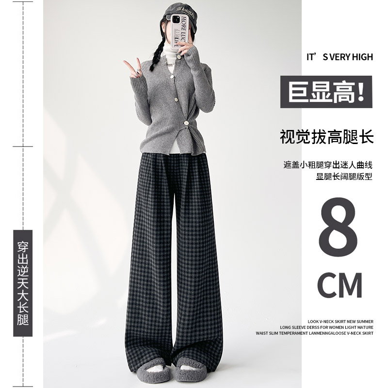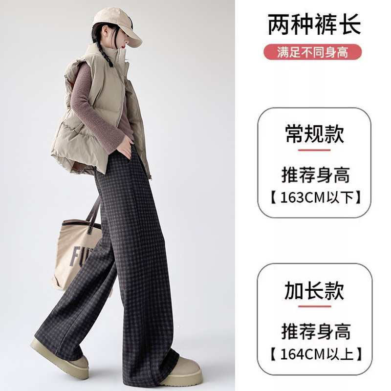 高腰加绒加厚直筒宽松休闲拖地裤 2025新款 女秋冬季 黑白格子阔腿裤