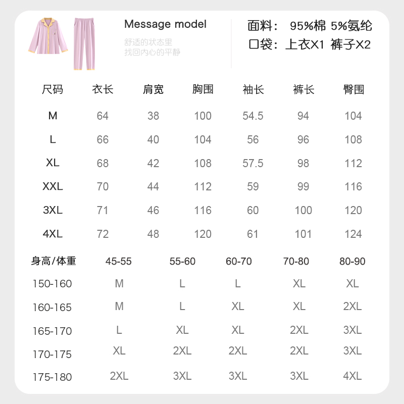 巨柔软 宽松男家居服大码 纯棉长袖 套装 情侣睡衣女春秋款 安之伴
