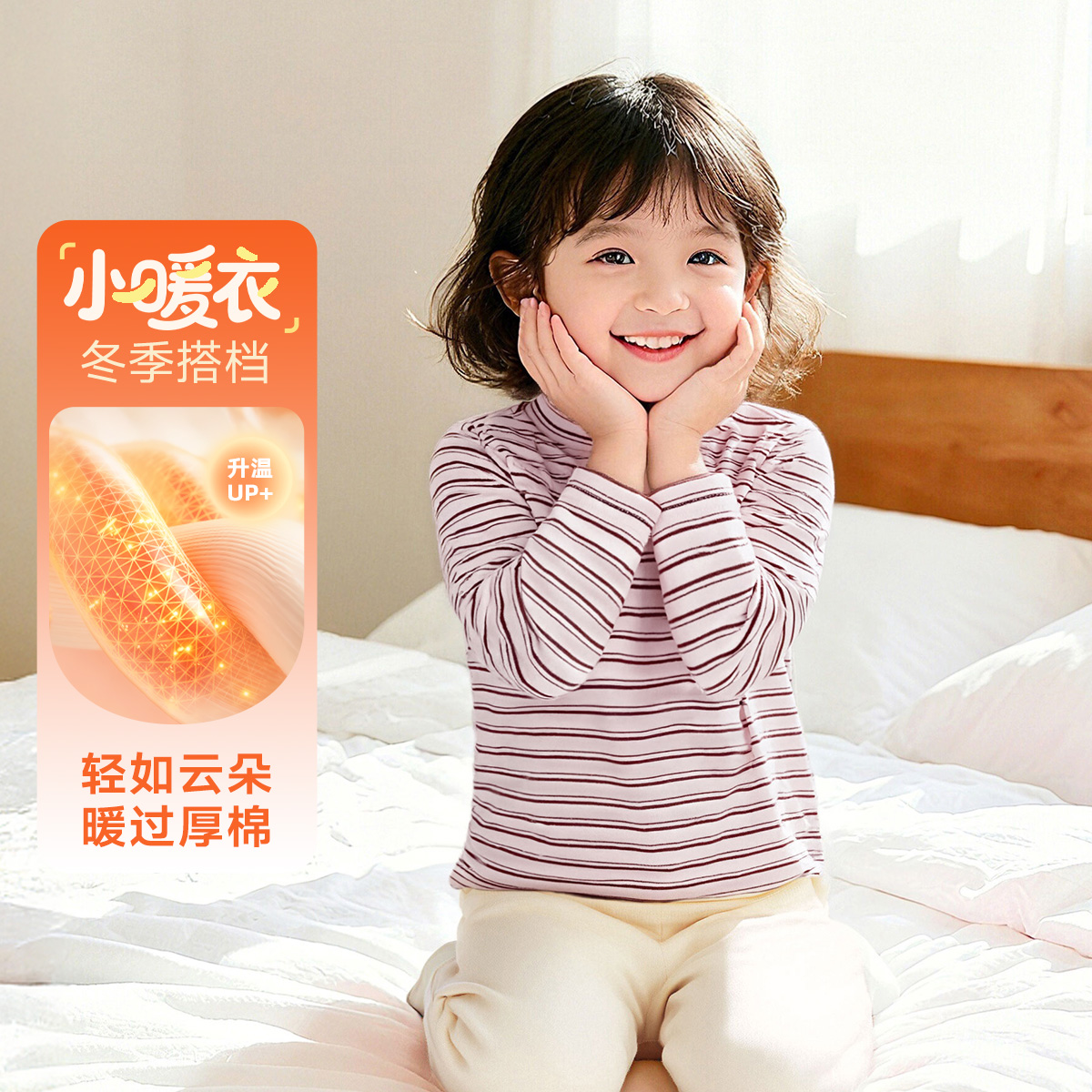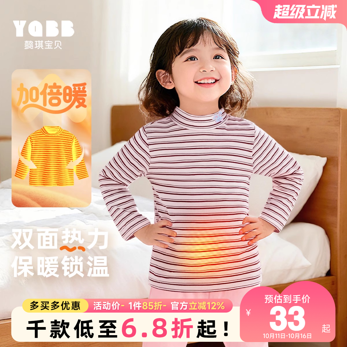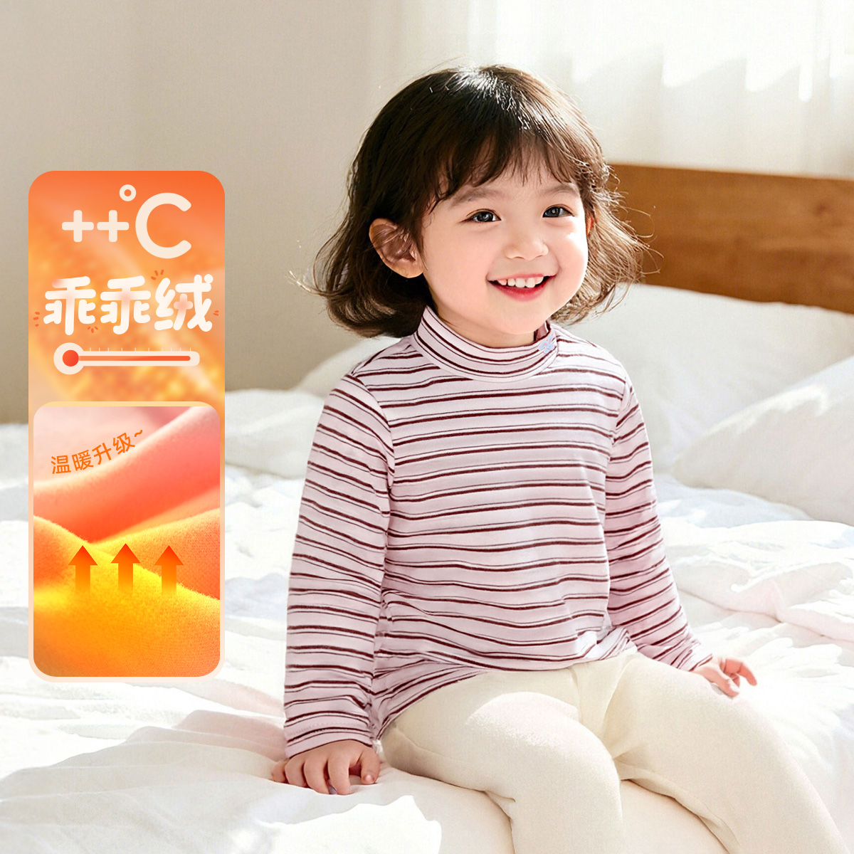 儿童衣服冬装 加绒童装 德绒宝宝上衣条纹小女孩打底衫 女童T恤冬季