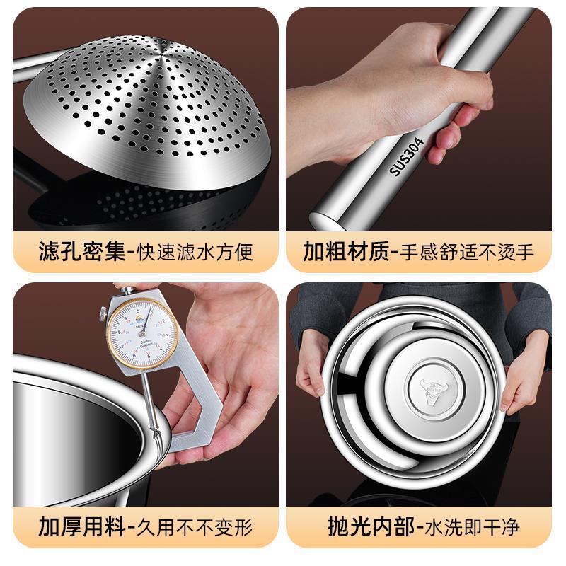 德国漏勺304不锈钢捞勺大滤勺304厨房大笊篱食品级漏瓢漏网勺筛网