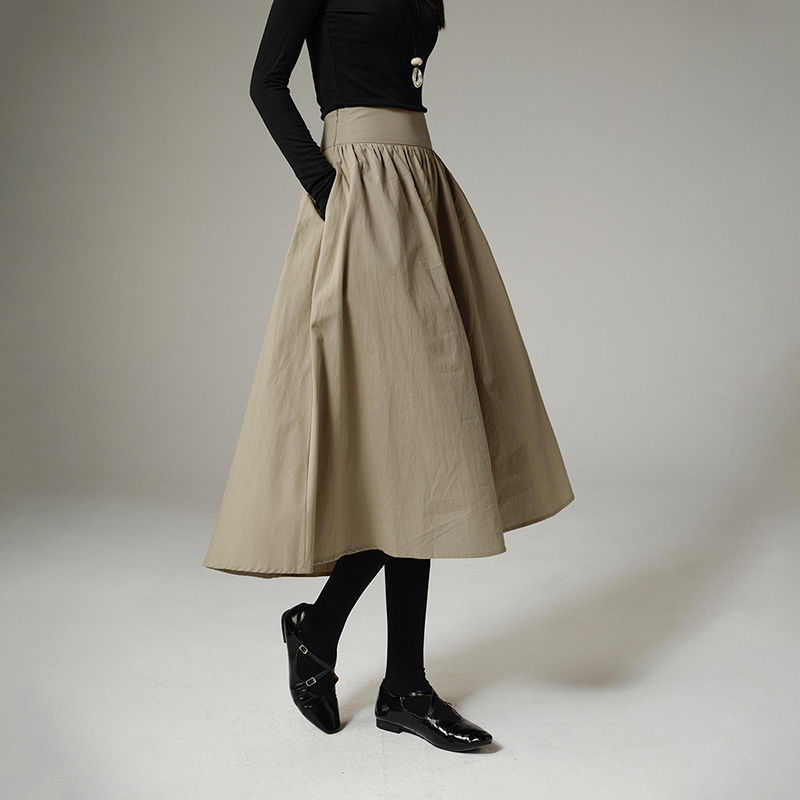大气大摆长裙 百搭时尚 晚白2025年秋新款 宽松气质裙子经典
