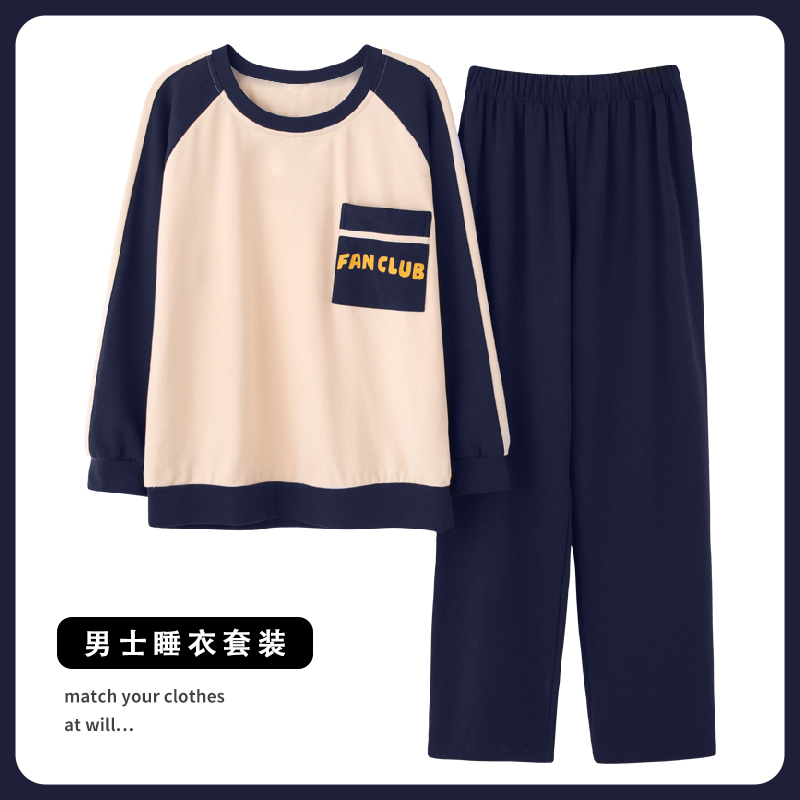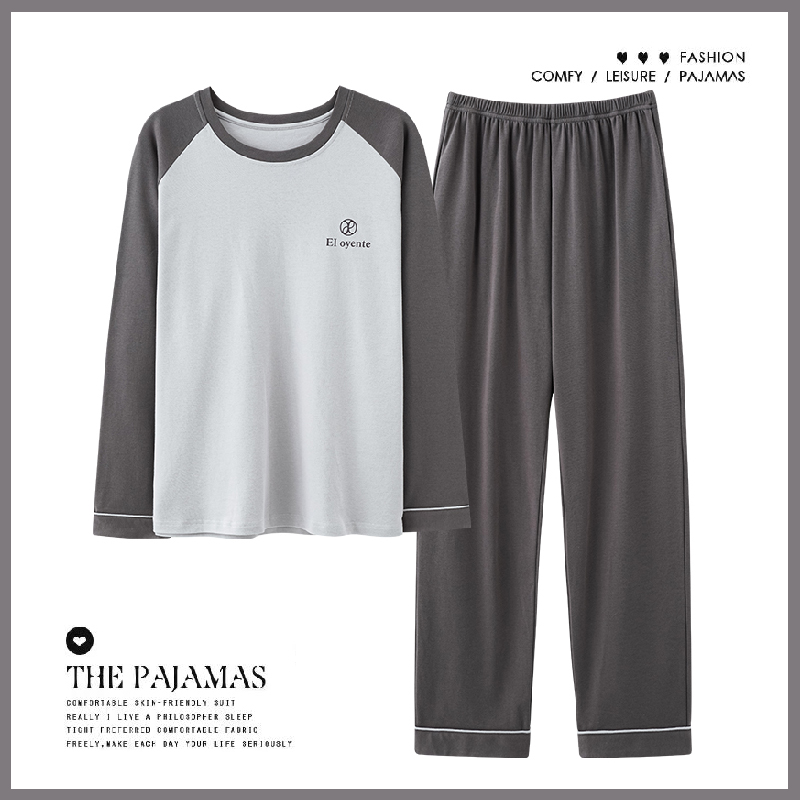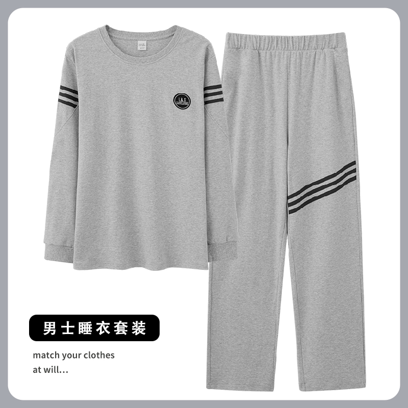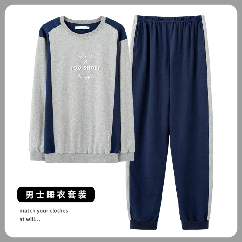 套装 睡衣男春秋季 简约休闲加大码 宽松家居服秋天棉质长袖 中年男士