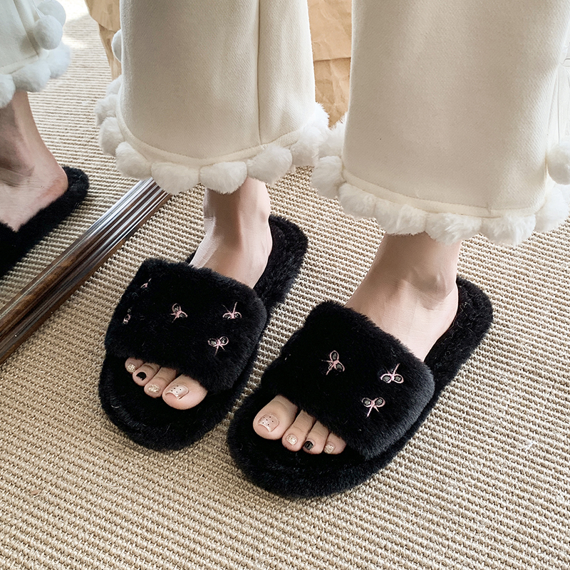 秋冬室内室内家居加厚保暖防滑毛绒棉拖 2025新款 蝴蝶结棉拖鞋 女款