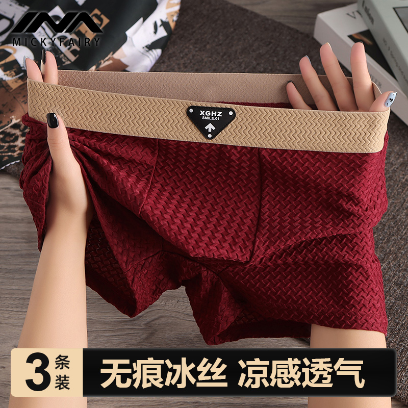 男生平角裤 男高弹裸感款 速干四角裤 冰丝男士 时尚 内裤 男式 新款 短裤