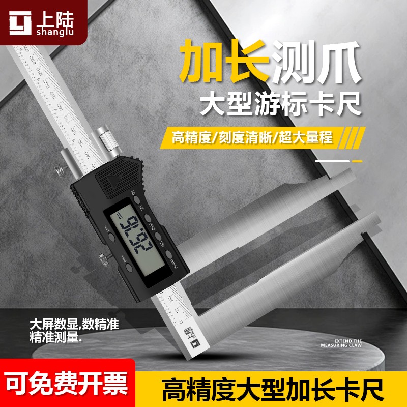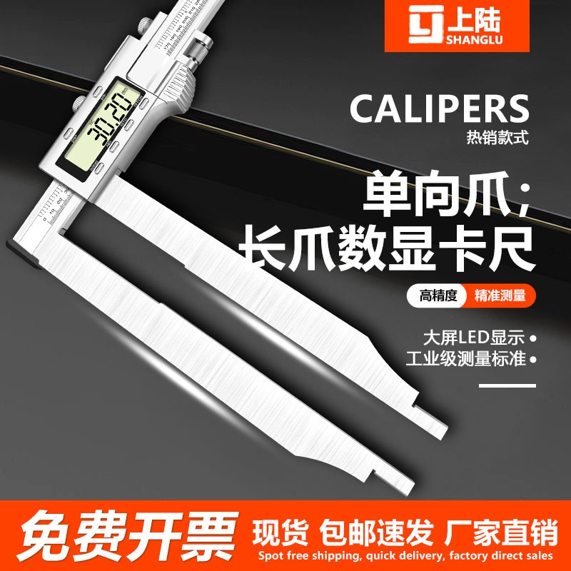 上陆长爪游标卡尺加长爪卡尺300 1000不锈钢金属壳数显长爪 500
