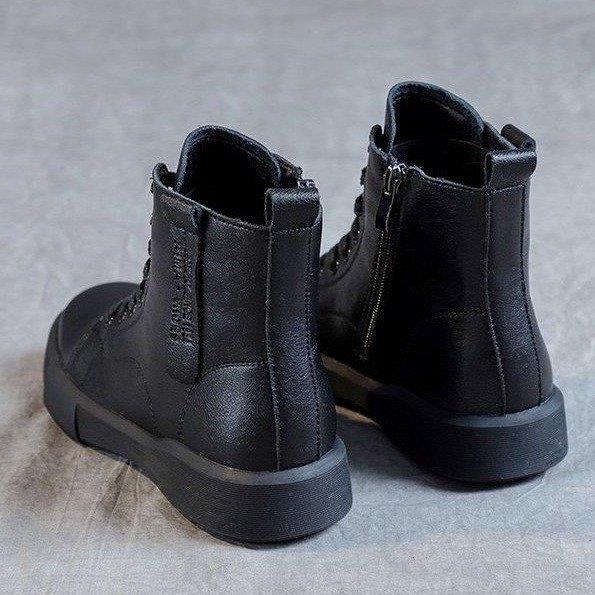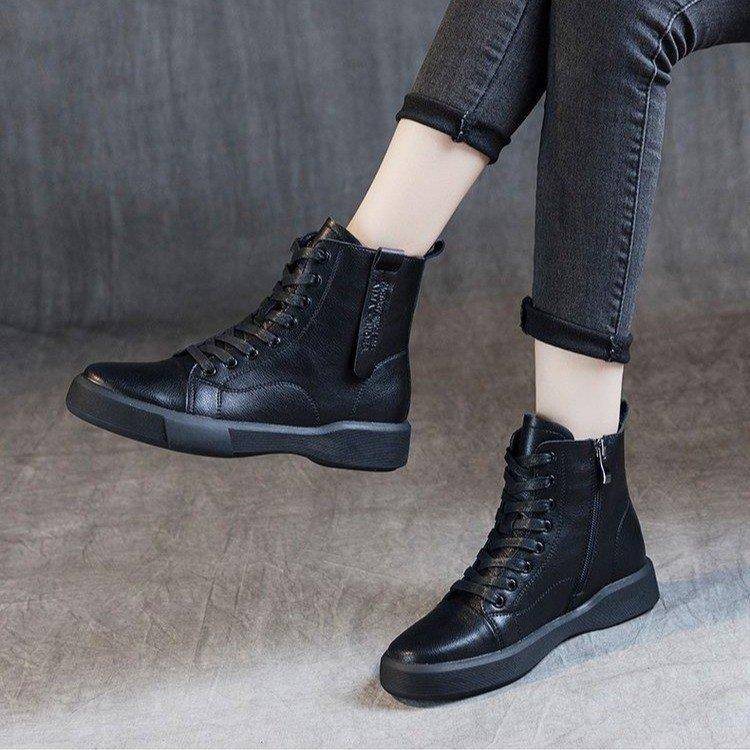 爆款 秋冬厚底复古平底英伦风短靴子 软皮加绒马丁靴女棉靴2025新款