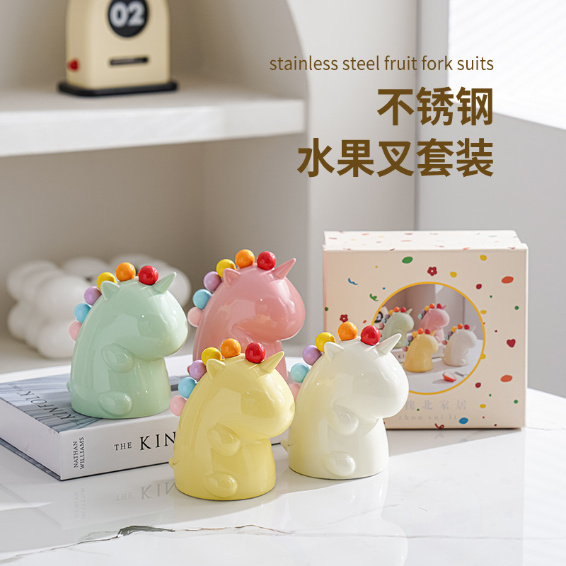 银槐北水果叉家用不锈钢轻奢高级感收纳罐套装 儿童安全可爱小叉子