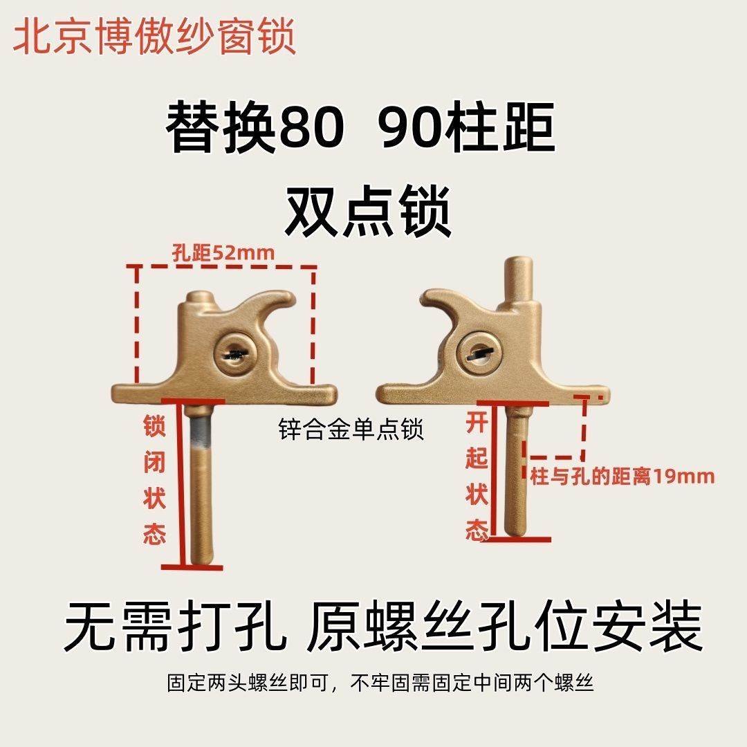 90双点锁金刚网纱窗锁具配件 柱距85 新款 锌合金单点锁扣替换老款