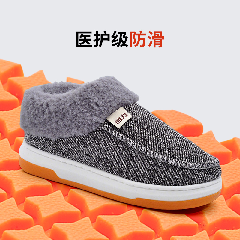 家居保暖室内厚底防滑老人加绒加厚低包跟棉拖鞋 回力老棉鞋 男冬季