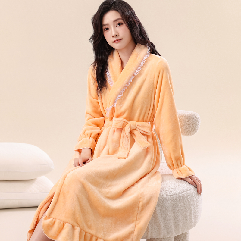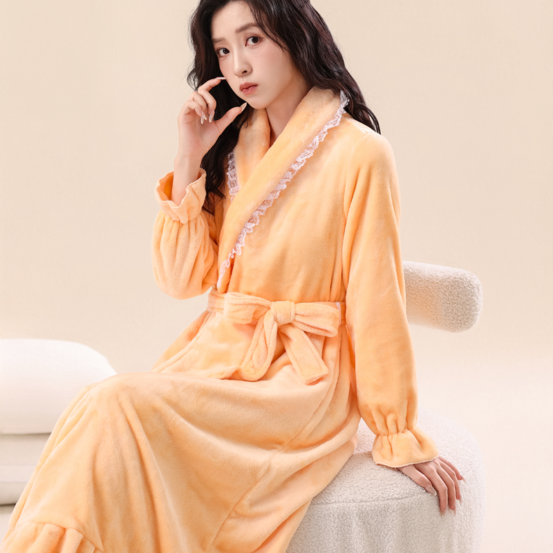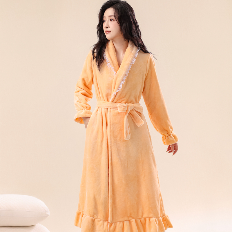 睡袍女冬季 浴袍法兰绒加厚加绒新娘晨袍冬天 珊瑚绒长款