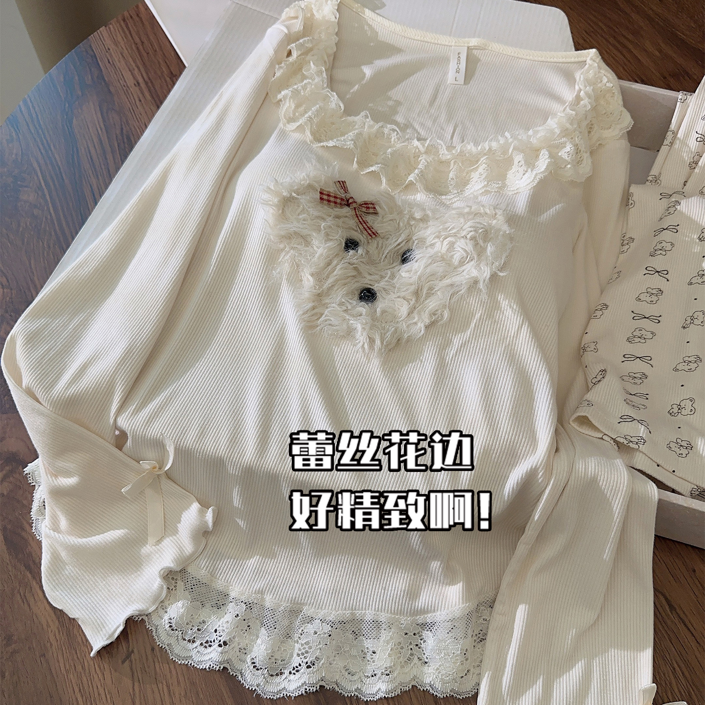 可爱小狗蕾丝花边少女家居服套装 纯棉新款 长袖 带胸垫睡衣女春秋季