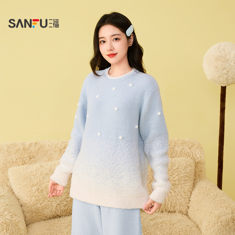 三福女冬季 甜系半边绒保暖家居服内衣846357 渐变小球睡衣套装