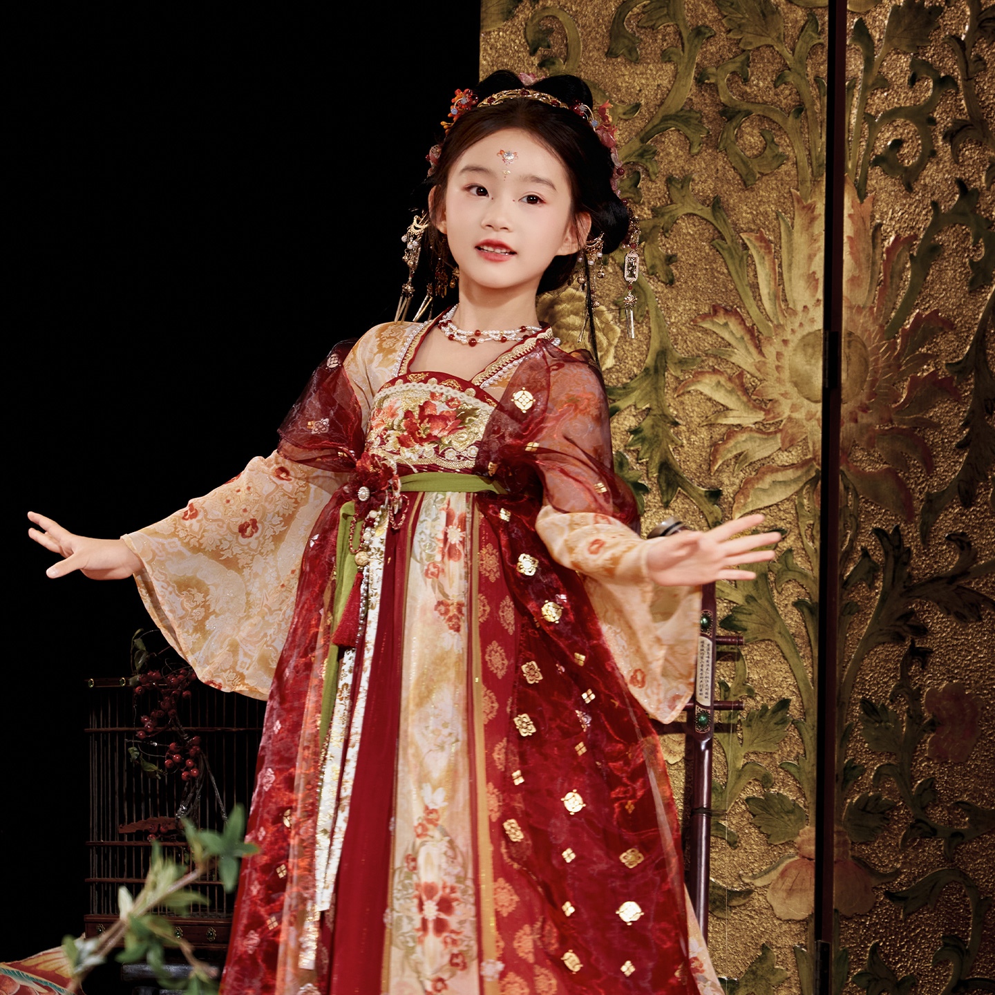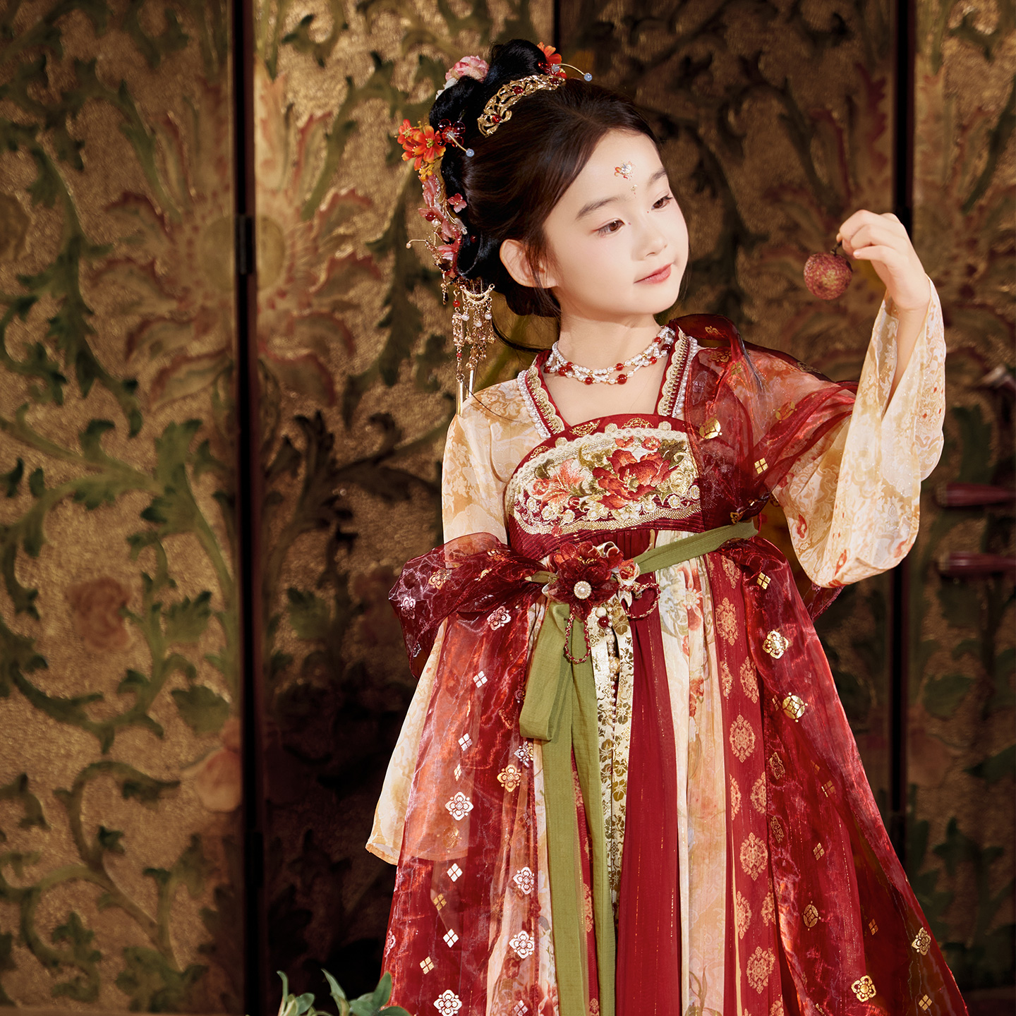 国风汉服女童刺绣连衣裙25秋季 火树银花 十三余童装 新款 现货