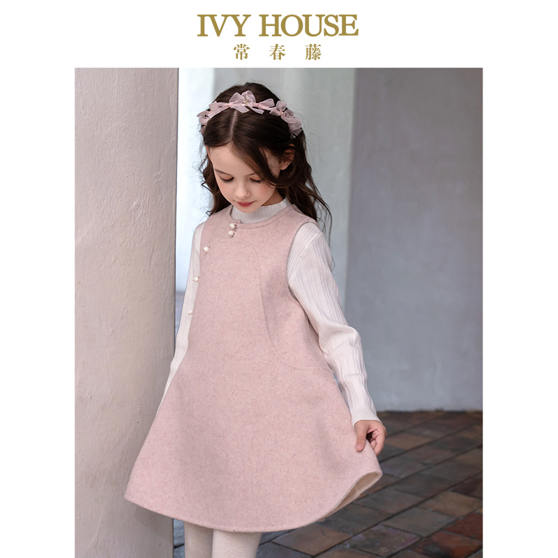 国风羊毛呢背心裙连衣裙外套 女童2025冬新款 IVY HOUSE常春藤童装