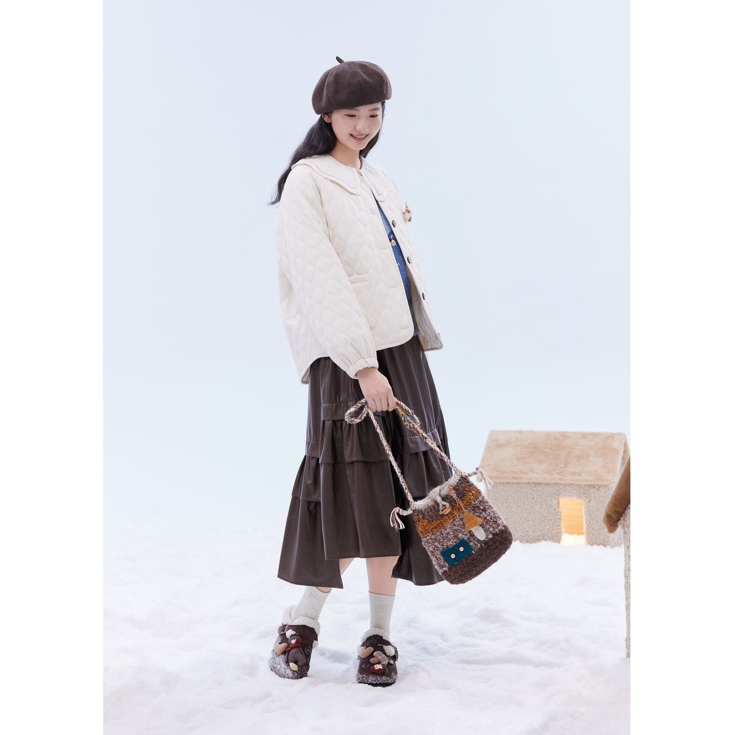 奶油泡芙针织拼接毛衣羽绒棉服女2025秋冬新款 韩国高级感保暖外套
