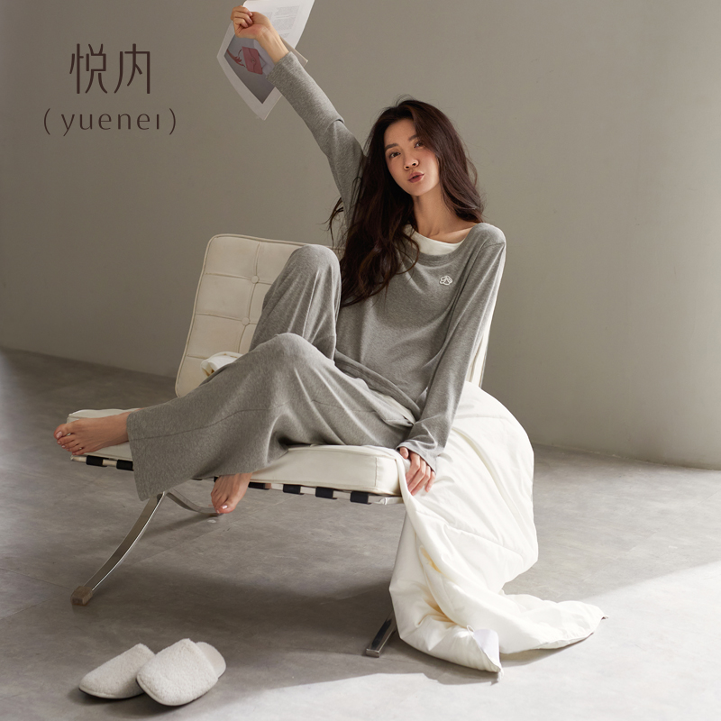 休闲可外穿套装 悦内带胸垫睡衣女士春秋款 家居服时尚 纯棉长袖 秋季
