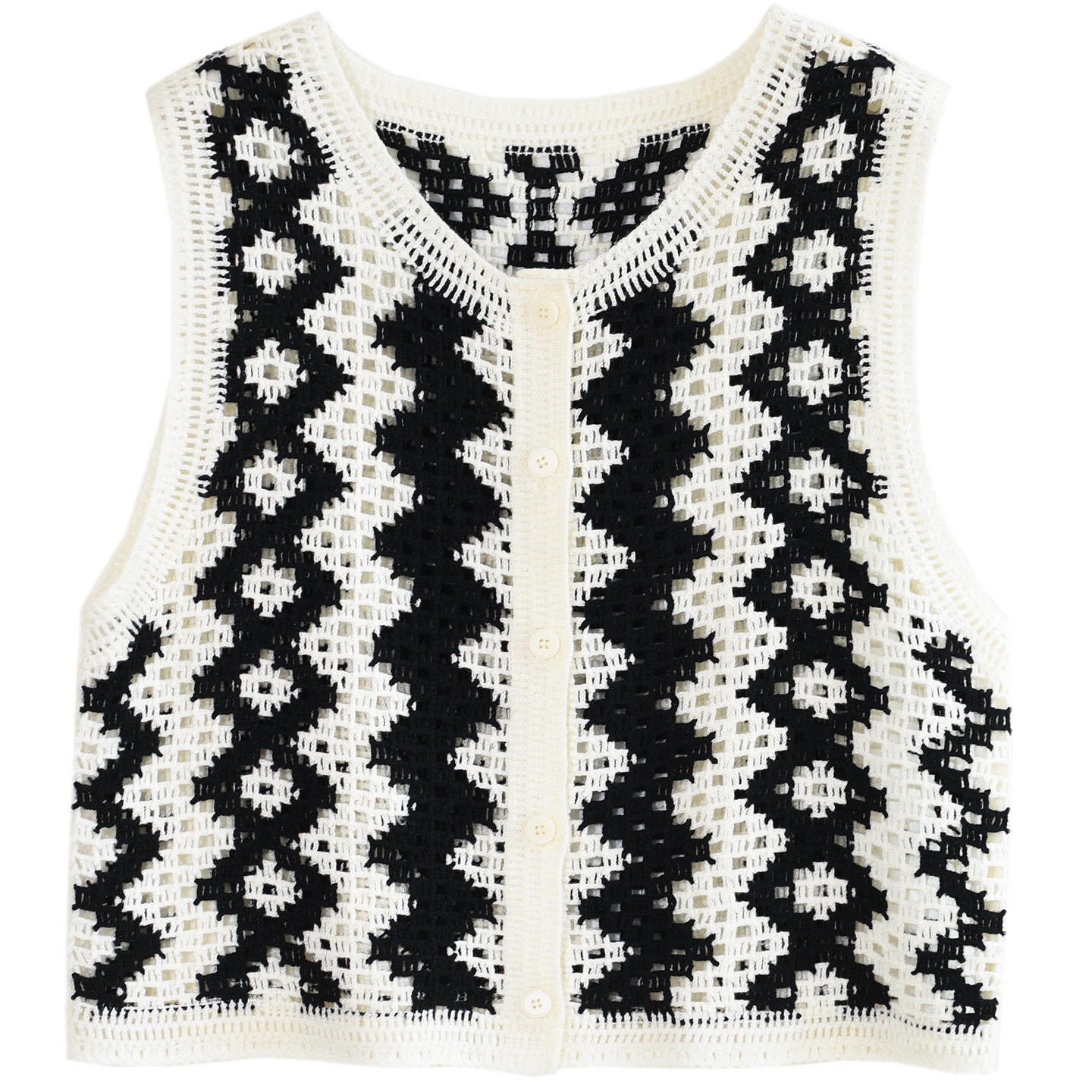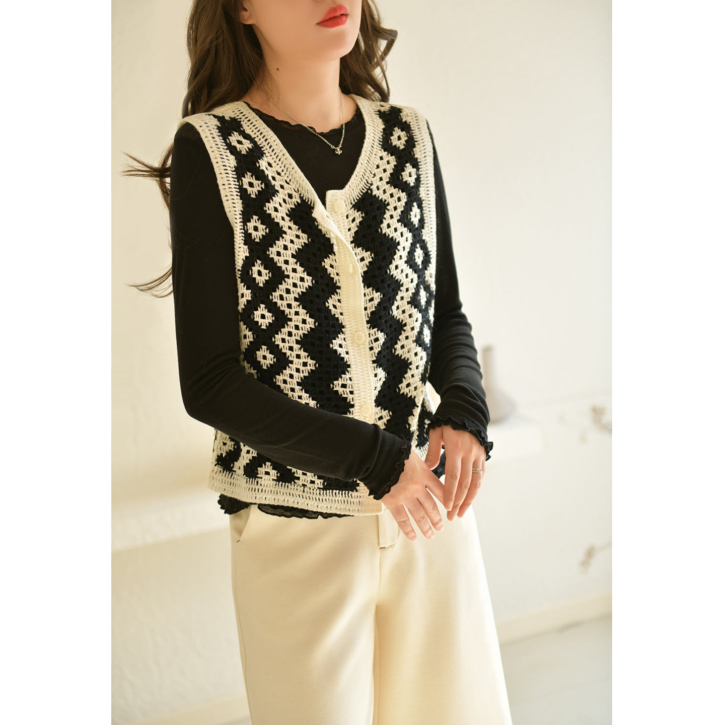 镂空花边纽扣针织衫 秋天叠穿马甲 吊带背心女内搭上衣外搭独特罩衫