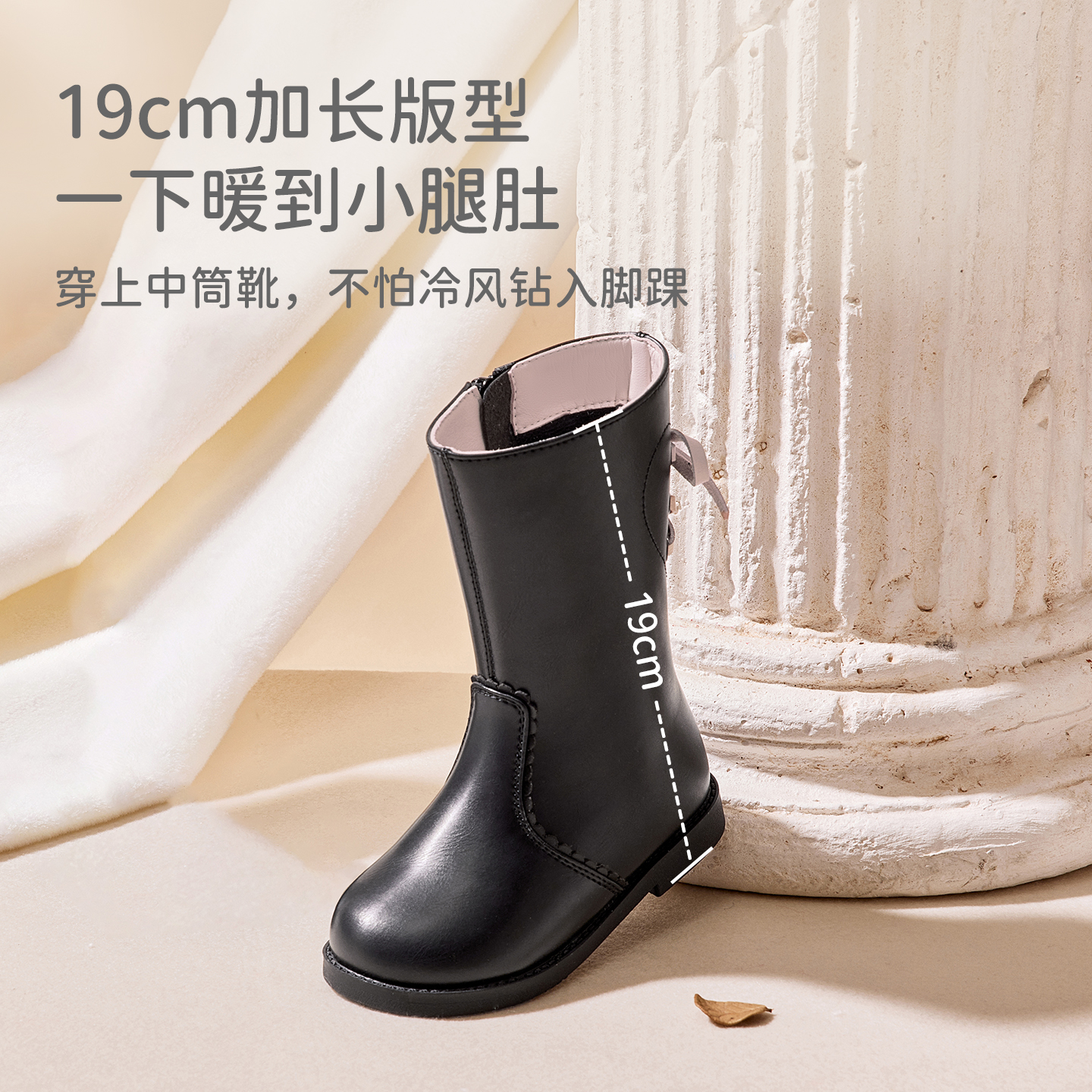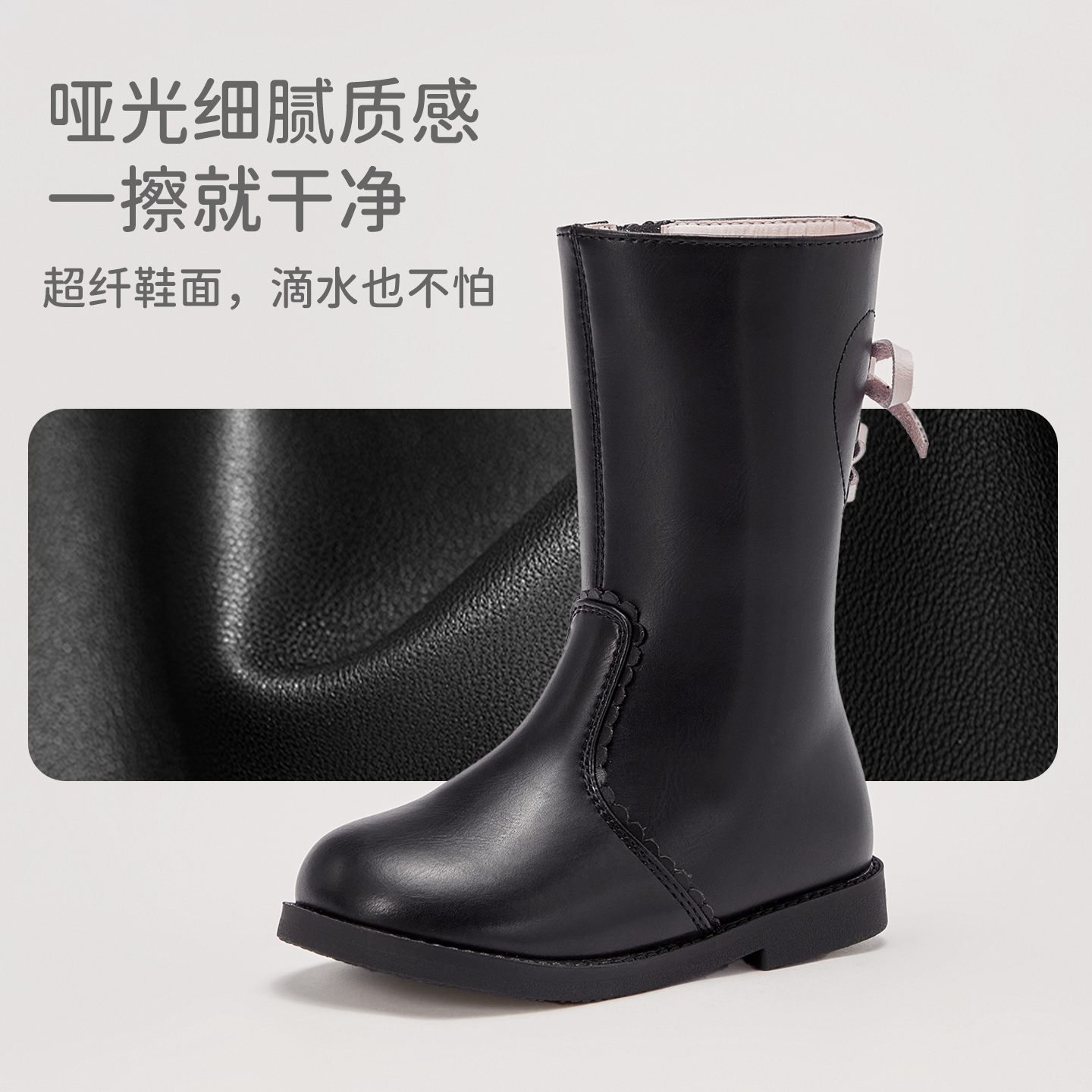 款 戴维贝拉皮靴女童高筒靴儿童加绒靴子冬季 长靴演出 双11预售