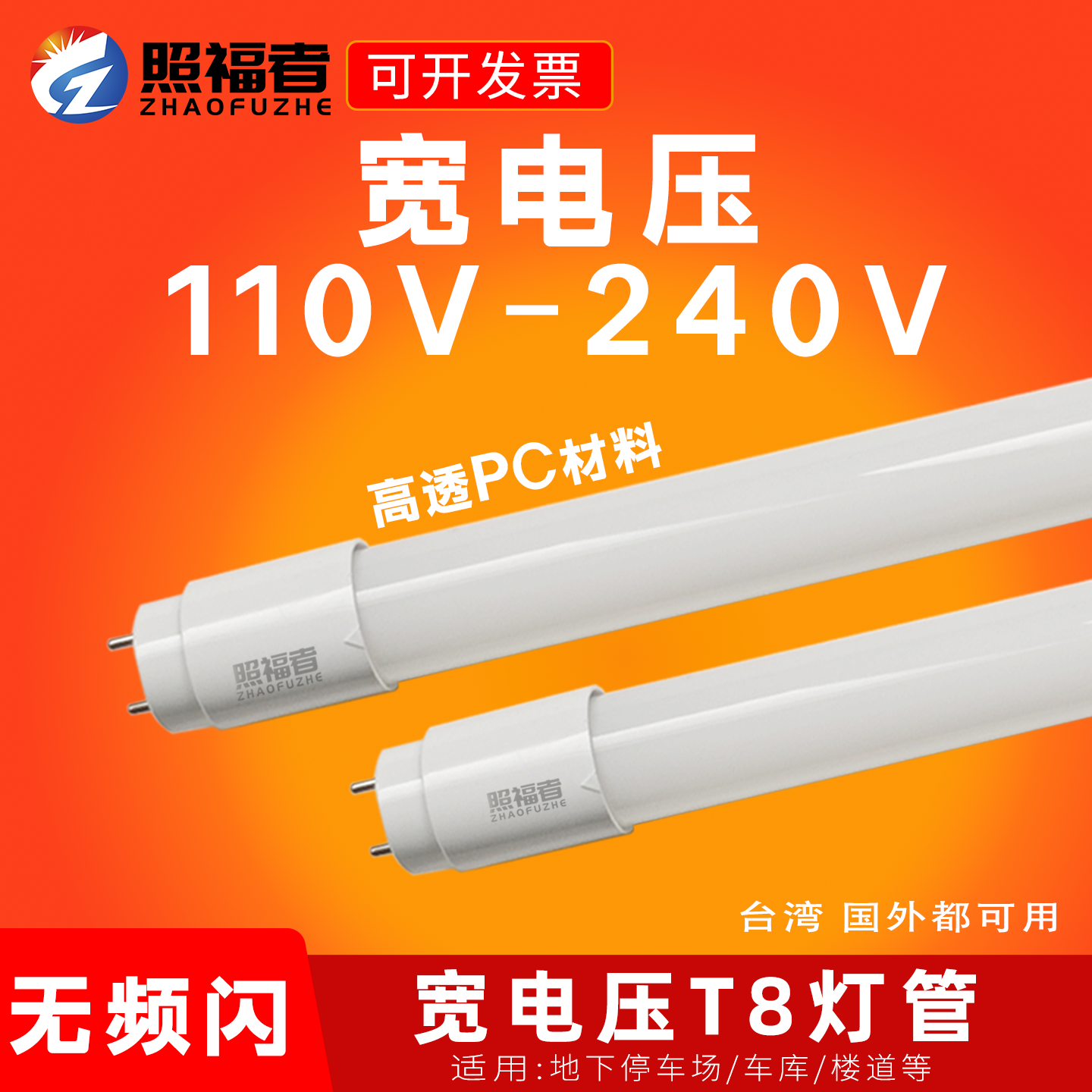 宽压T8led单 双端微波雷达人体感应灯管车库110V台湾出口声控光管