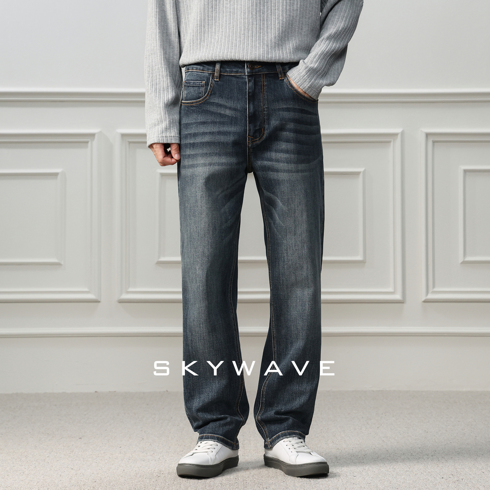 阔腿裤 丹宁原色牛仔裤 新款 2025秋季 子 男宽松直筒加绒加厚休闲男士