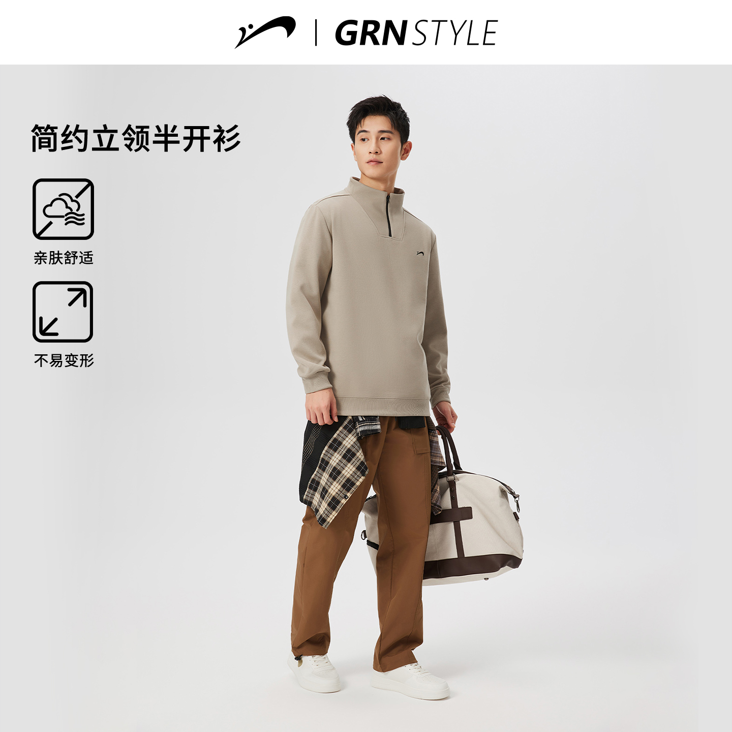 黑色圆领套头长袖 鸿星尔克卫衣男款 男生运动男装 男士 上衣 秋冬新款