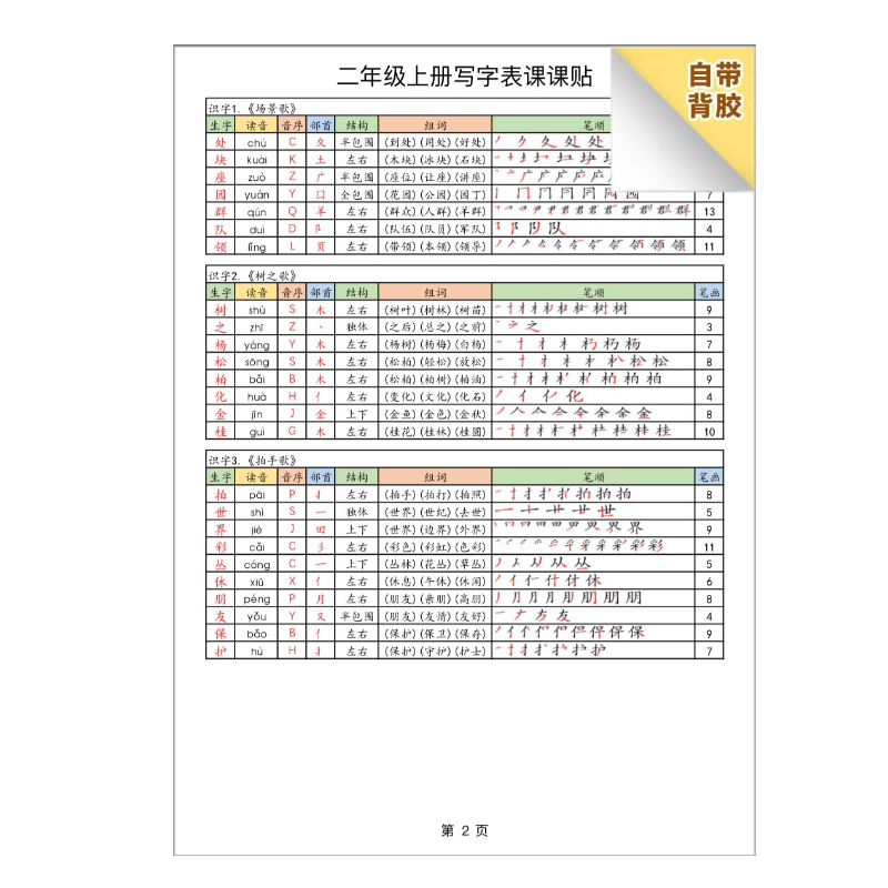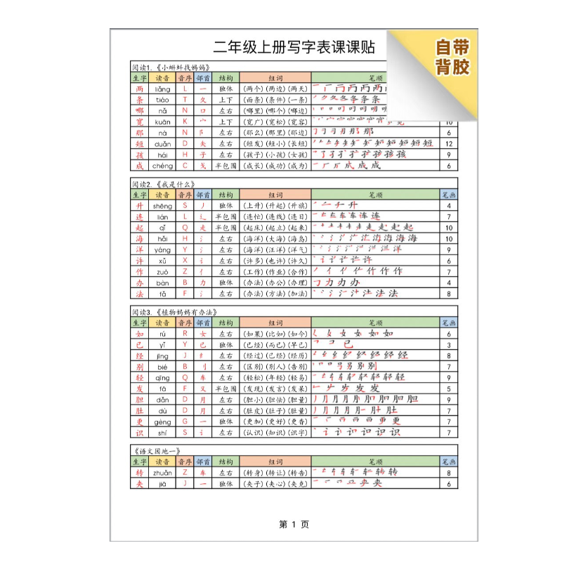 25秋小学二三年级上册语文写字表课课贴可粘贴同步课内生字组词拼音结构部首课前预习课后巩固不干胶款