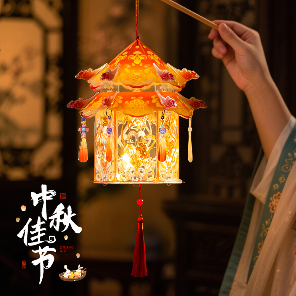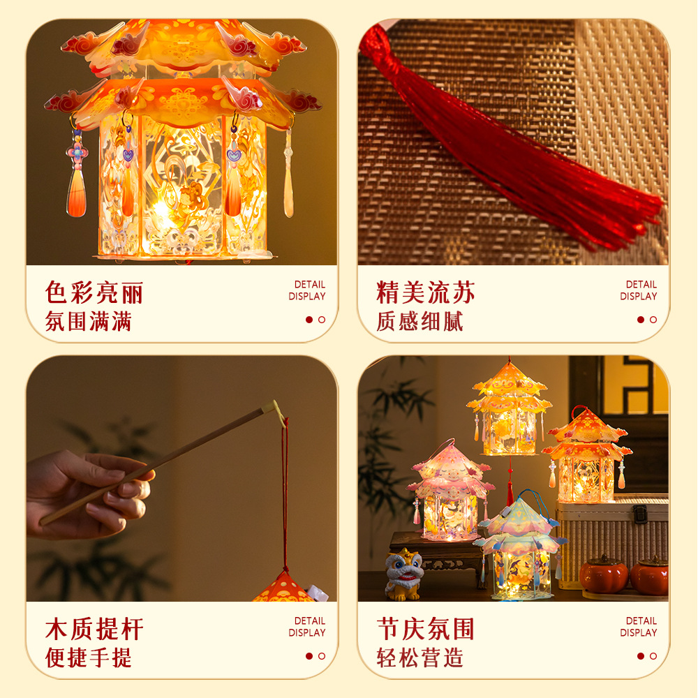 新款 非遗花灯手工diy儿童手提发光琉璃灯材料包古风汉服拍照道具