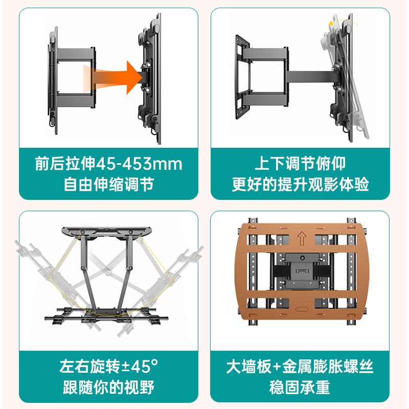 电视机伸缩挂架旋转壁挂适用于小米海信TCL75 85等通用超薄支架子