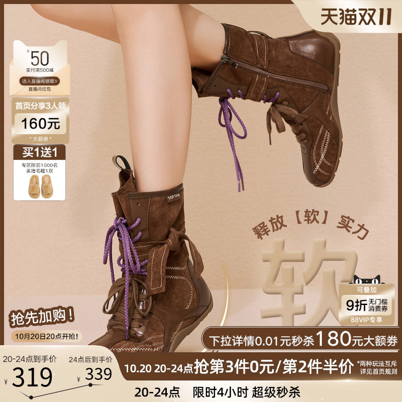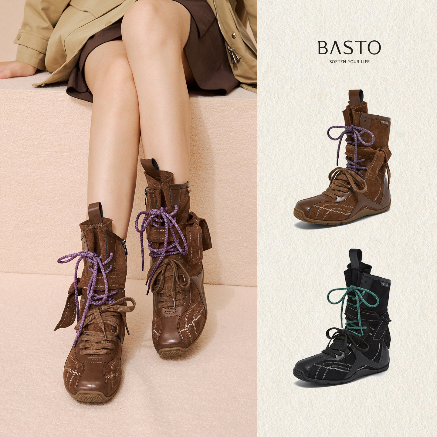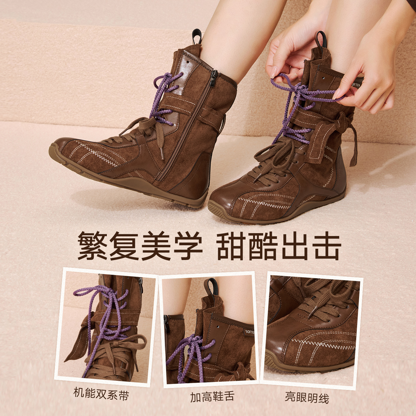 百思图25冬季 赛车靴拳击靴女德训短靴马丁靴西部靴A9101DZ5 新款