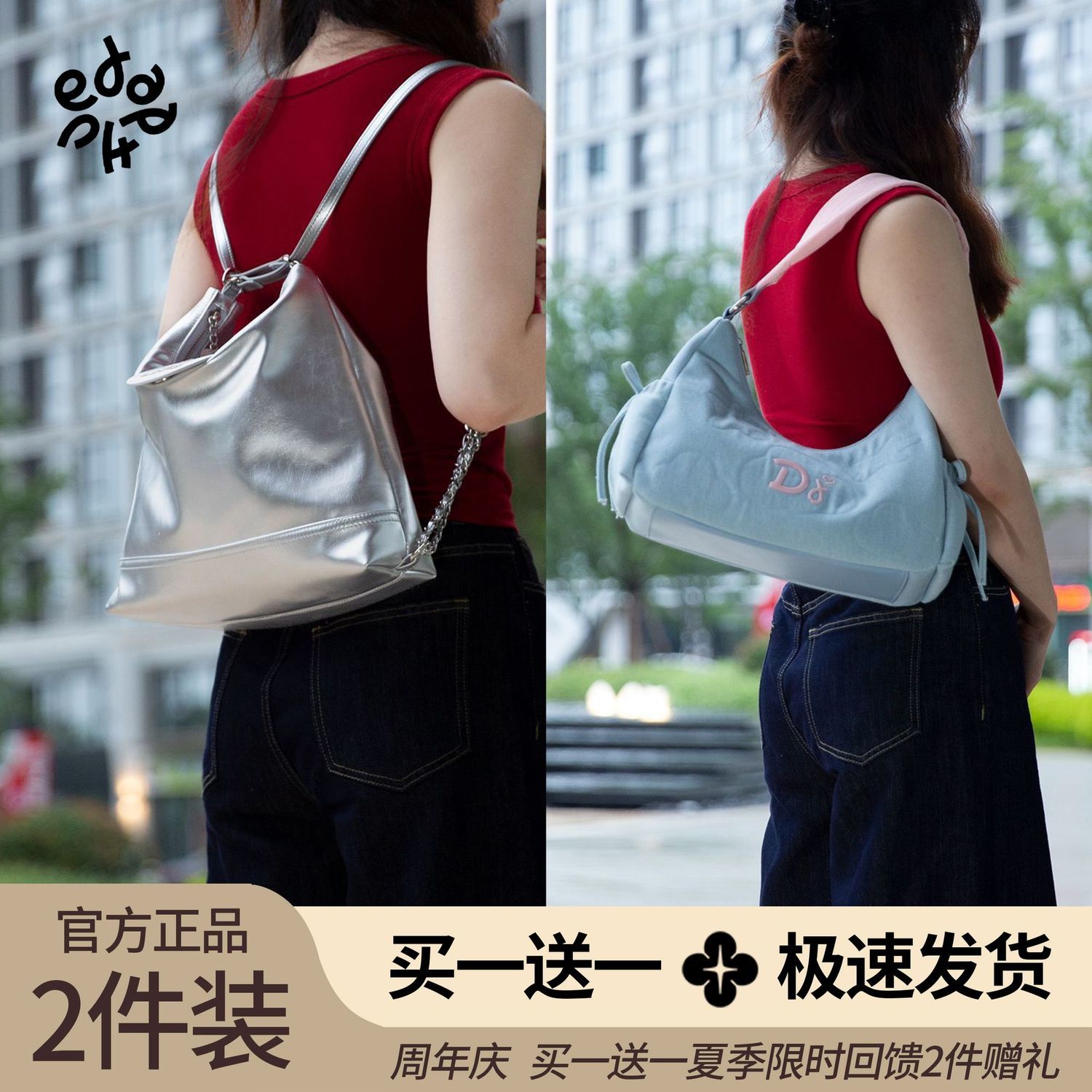 双肩包单肩腋下托特包包女上班通勤流浪包 达芙妮新款 买一赠一
