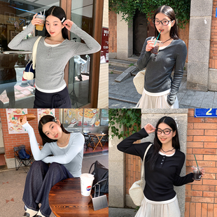 显瘦内搭打底衫 拼接修身 T恤女2025秋新款 NOA真维斯黑色假两件长袖