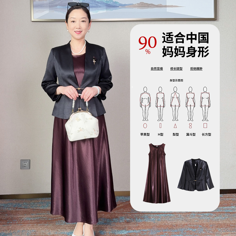 新中式 高端外套中老年女装 连衣裙套装 新款 裙子 春秋装 洋气妈妈秋季