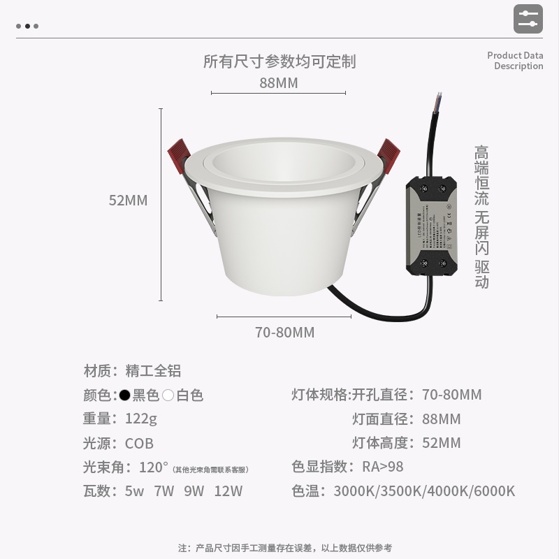 嵌入式 筒灯全光谱护眼防眩光无主灯天花灯客厅背景墙小山丘孔灯