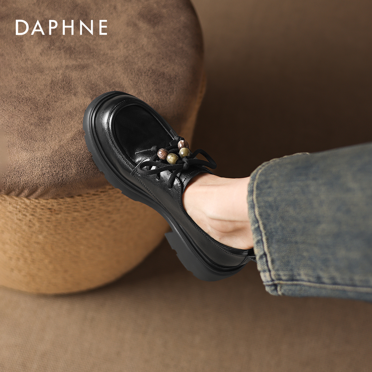 黑色英伦风单鞋 达芙妮乐福鞋 厚底不累脚小皮鞋 秋季 复古 女2025新款