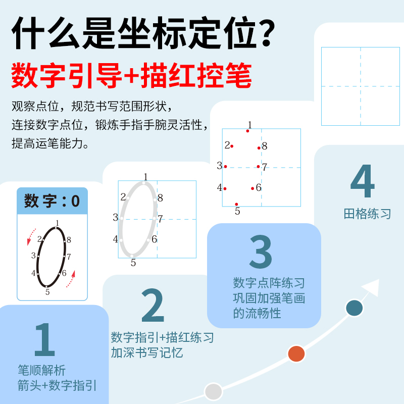 坐标定点定位数字幼儿园儿童描红练字帖学前班初学者控笔训练写字描红手写识字书法小学生绘画描红小楷书幼儿园练习一年级写字描红