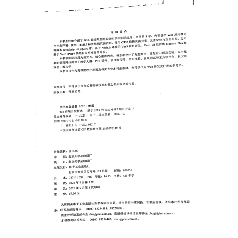 社新华书店正版 Web前端开发技术——基于IDEA 等大学教材电子工业出版 PHP7项目开发吴志祥 Vue3