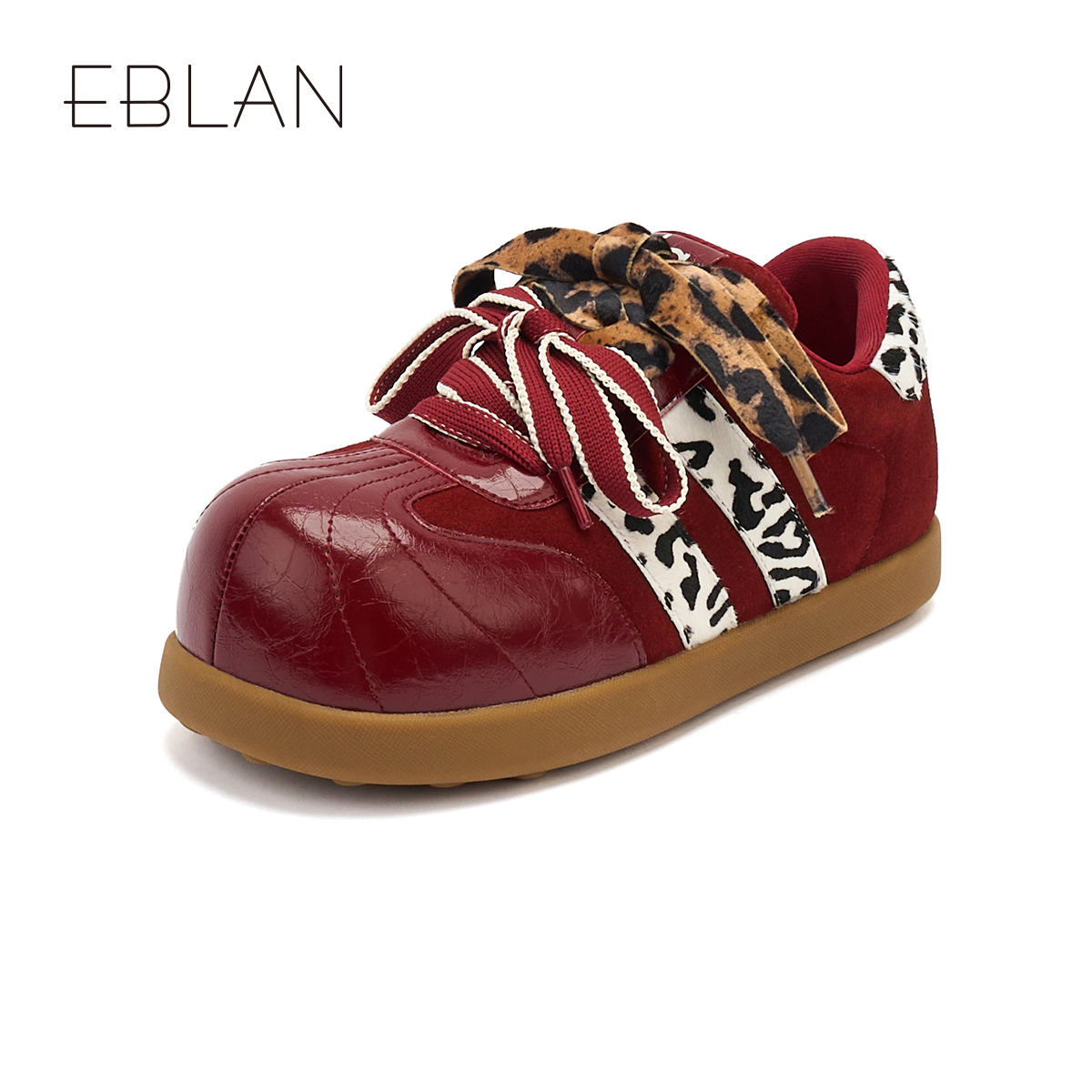 大头内增高休闲板鞋 EBLAN 新款 女2025秋季 子 伊伴美拉德豹纹德训鞋