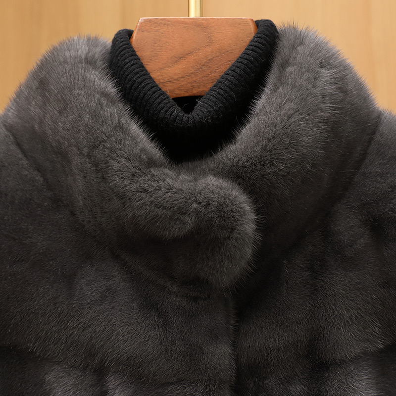 海宁整貂裘皮大衣 2025冬新款 水貂皮草外套女短款 立领横排夹克长袖