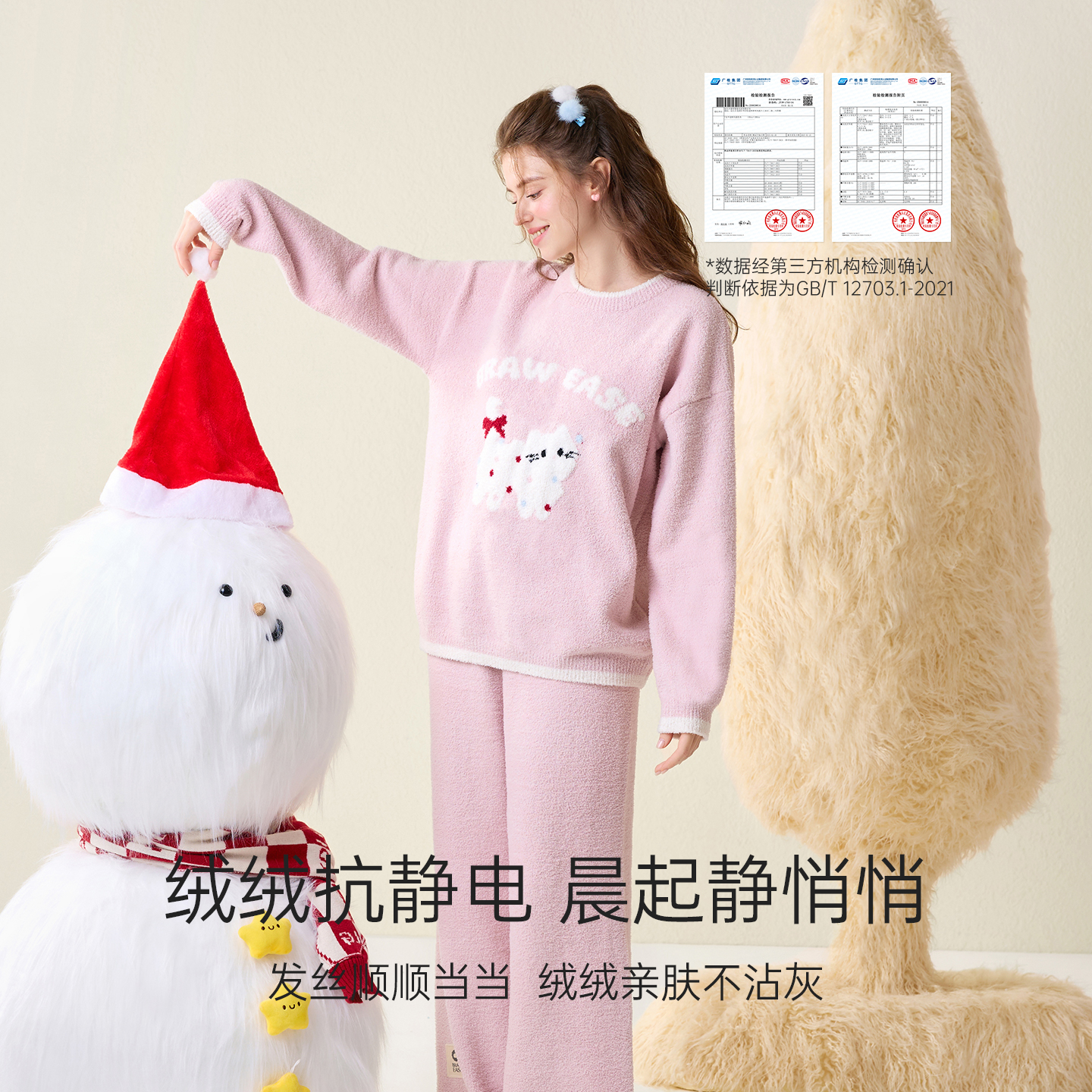 冬 可外穿秋冬款 BE半边绒睡衣女冬季 珊瑚绒可爱加绒加厚家居服套装