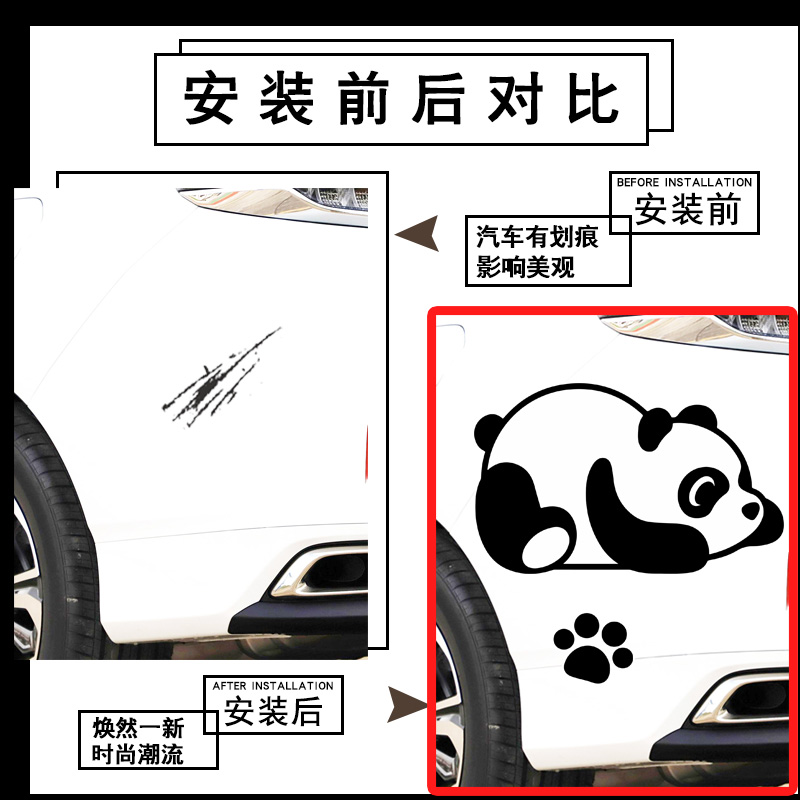 汽车划痕遮挡遮盖车贴装 防水晒卡通可爱大熊猫车身创意贴纸 饰个性